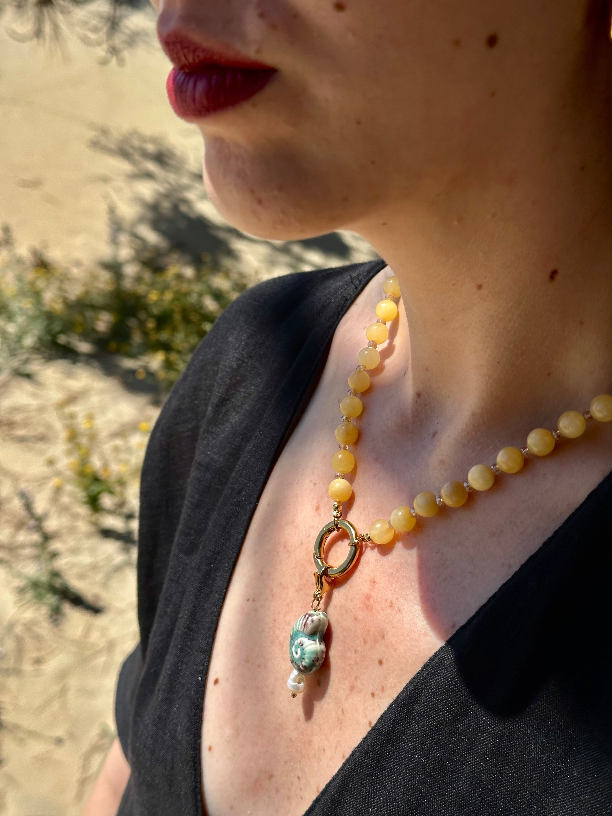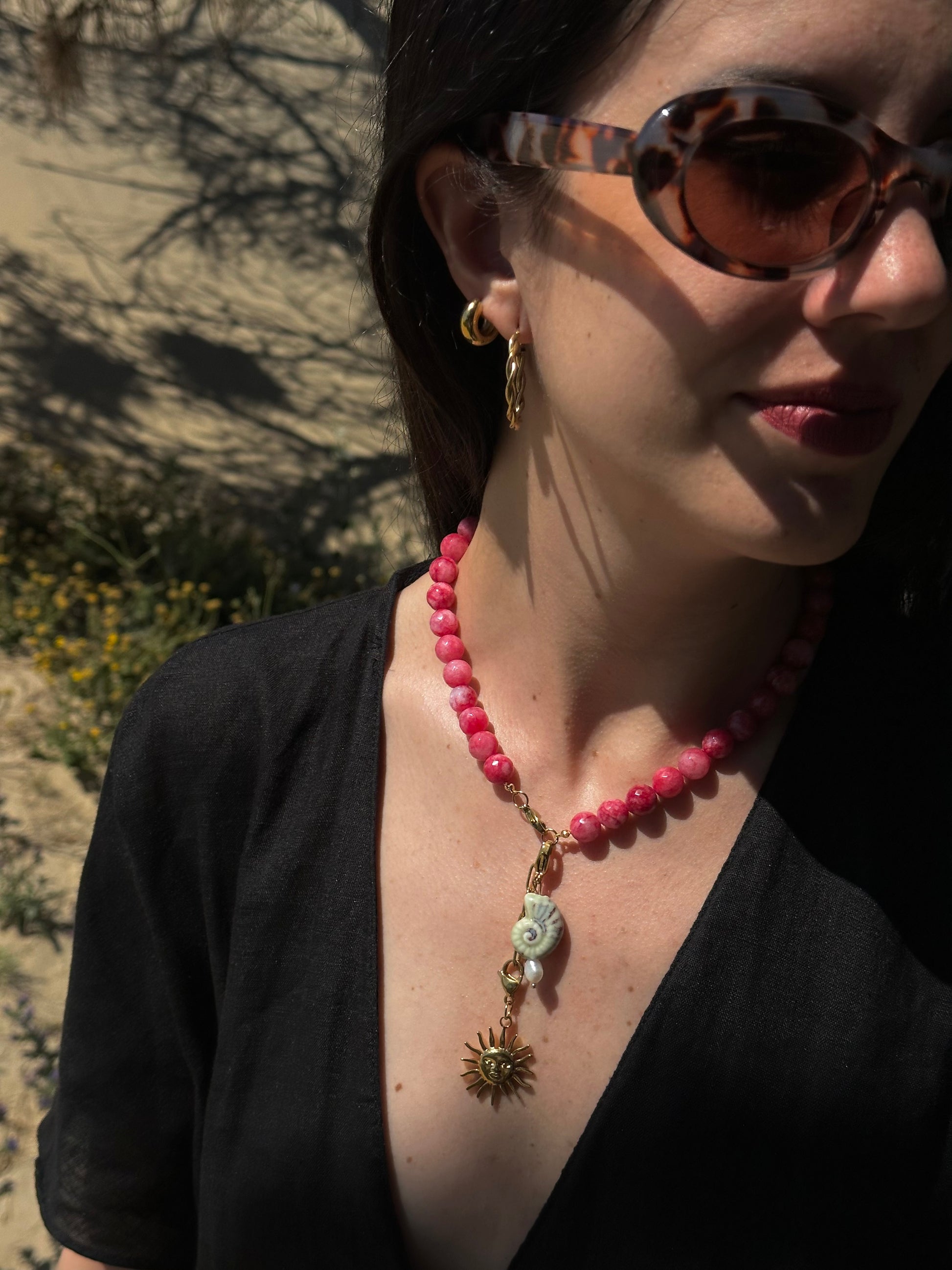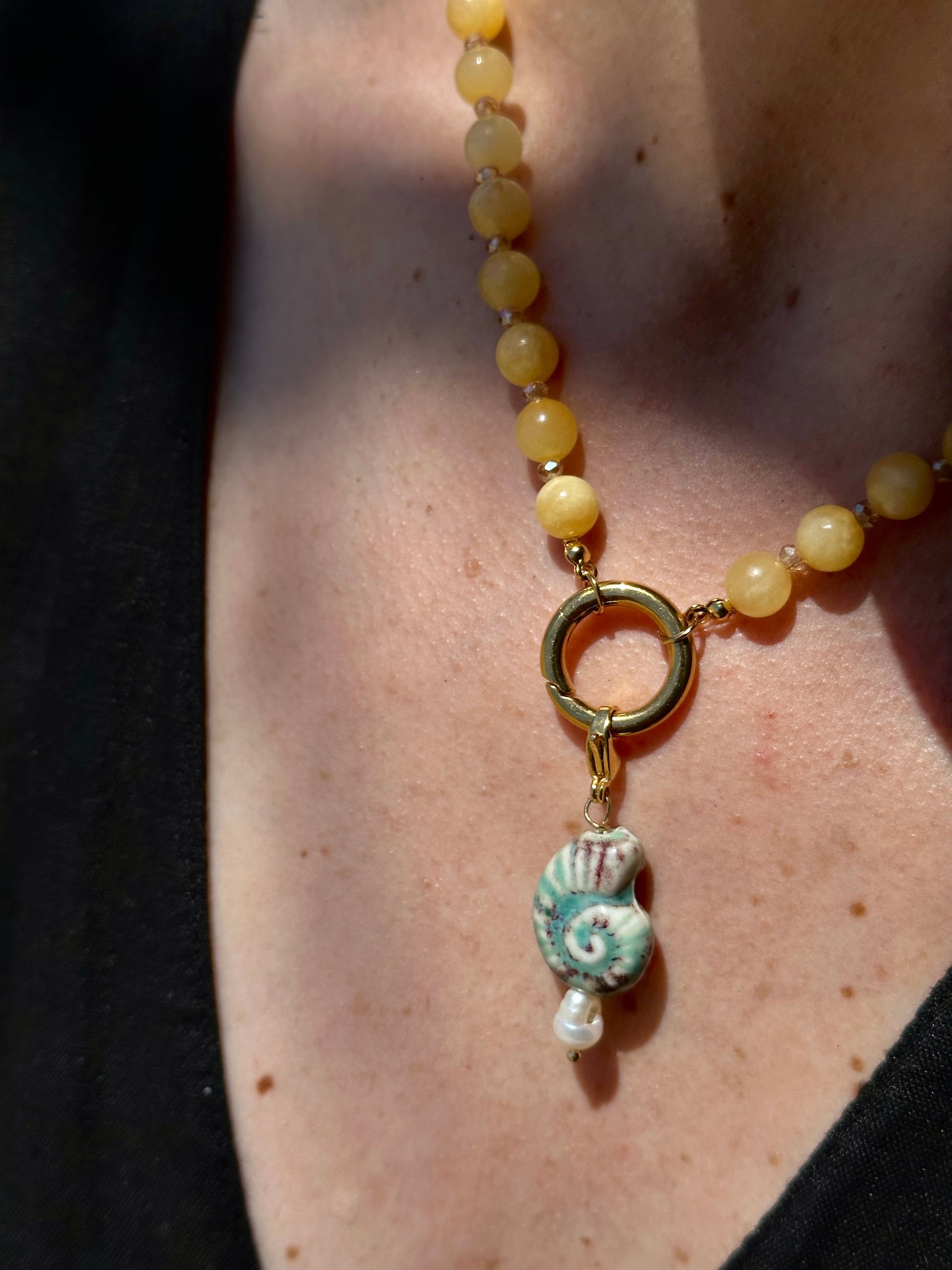 Charm de ceramica en forma de caracola con enchache de acero inoxidable.