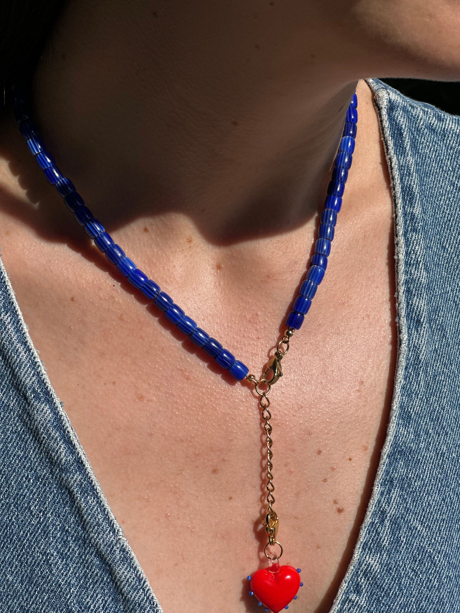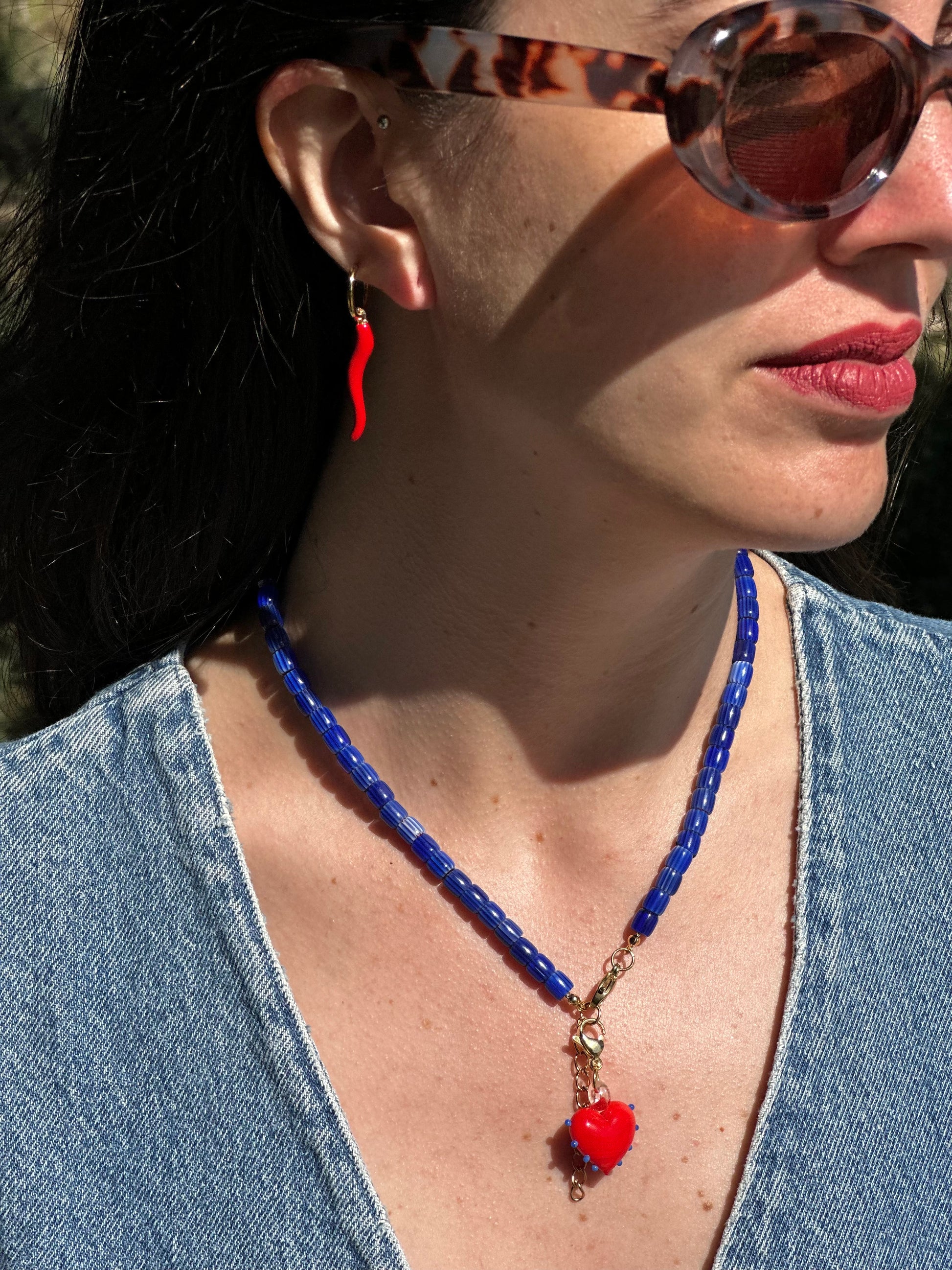 Charm cristal en forma de corazón con enchache de acero inoxidable.