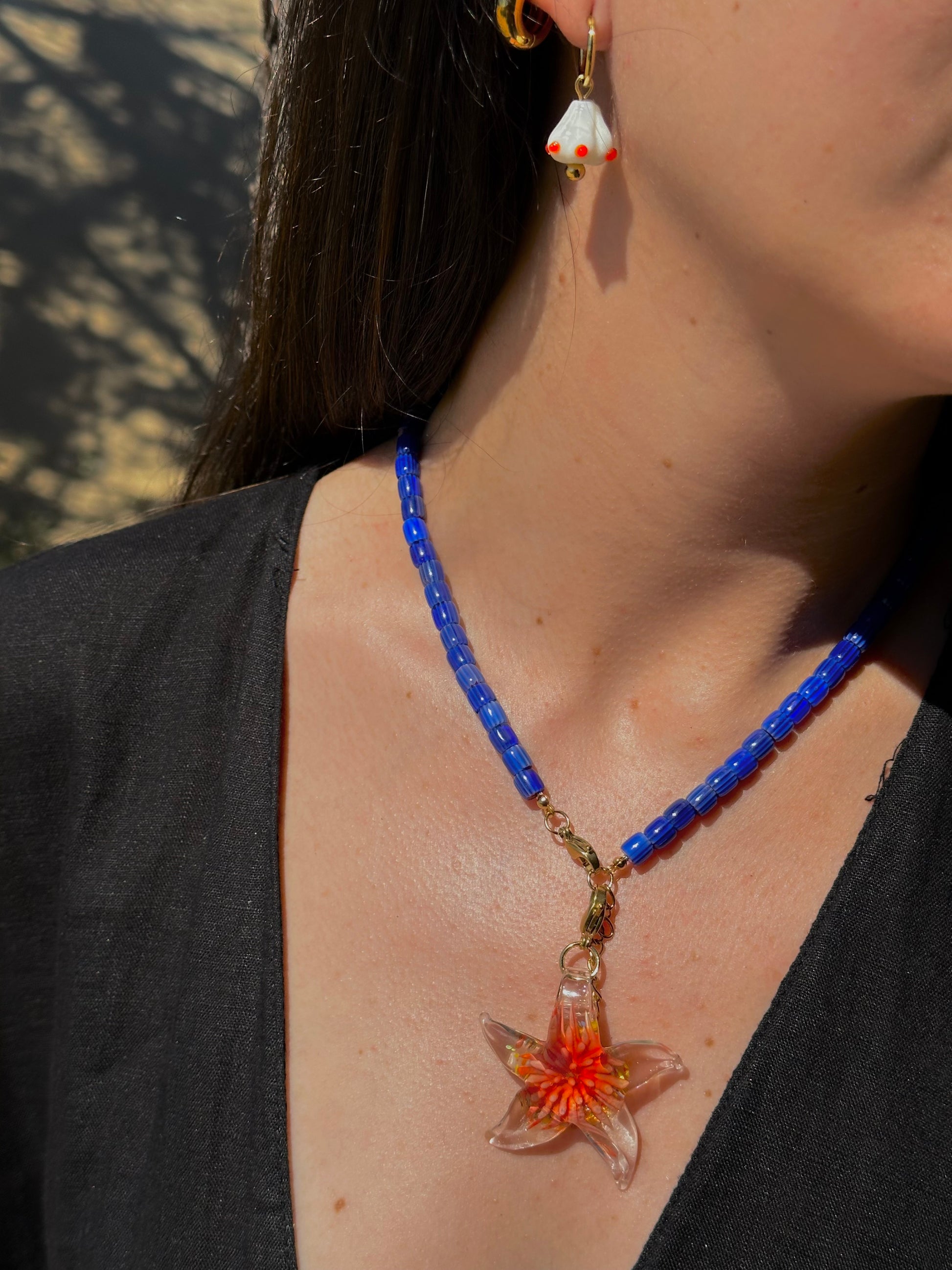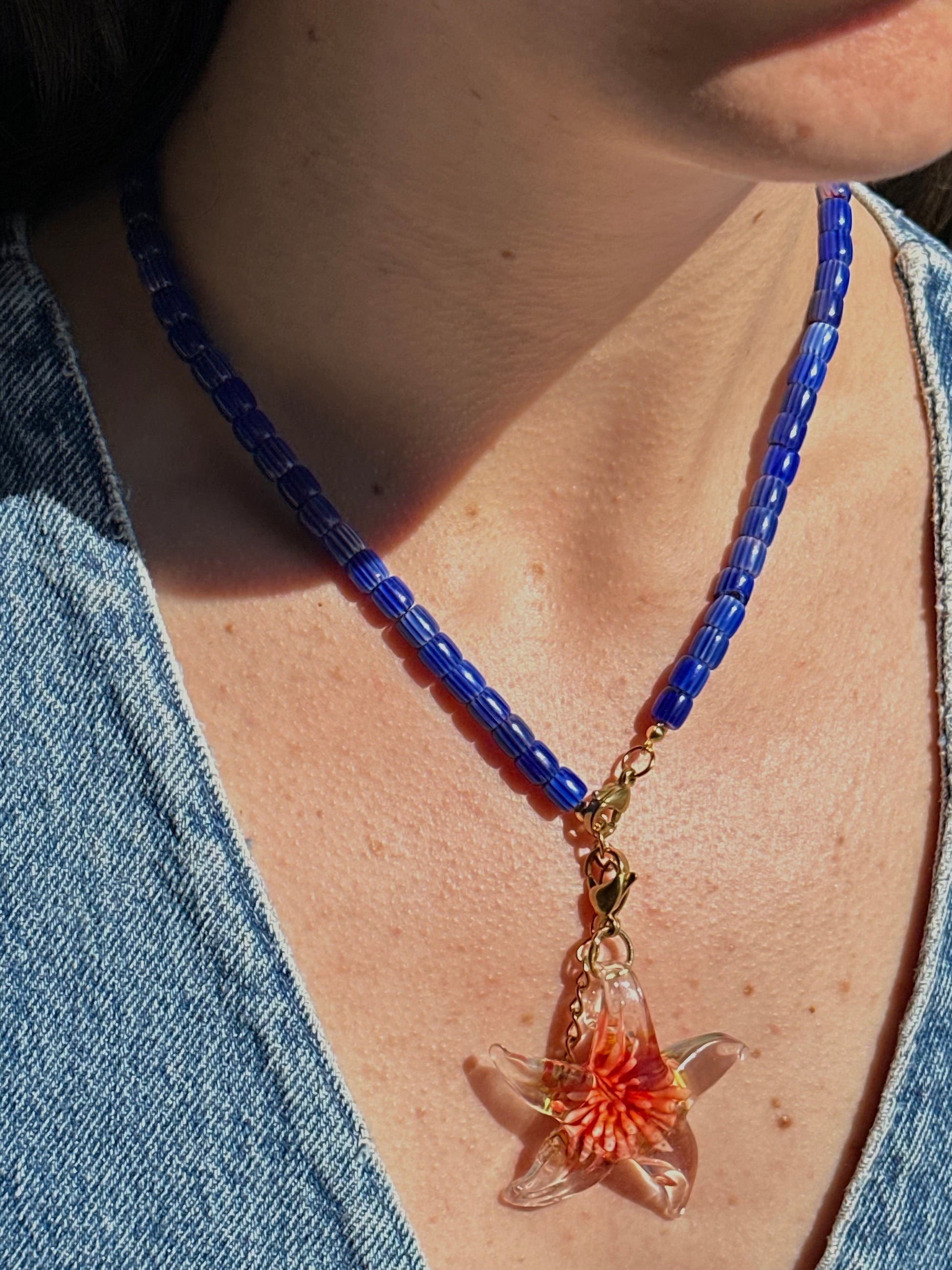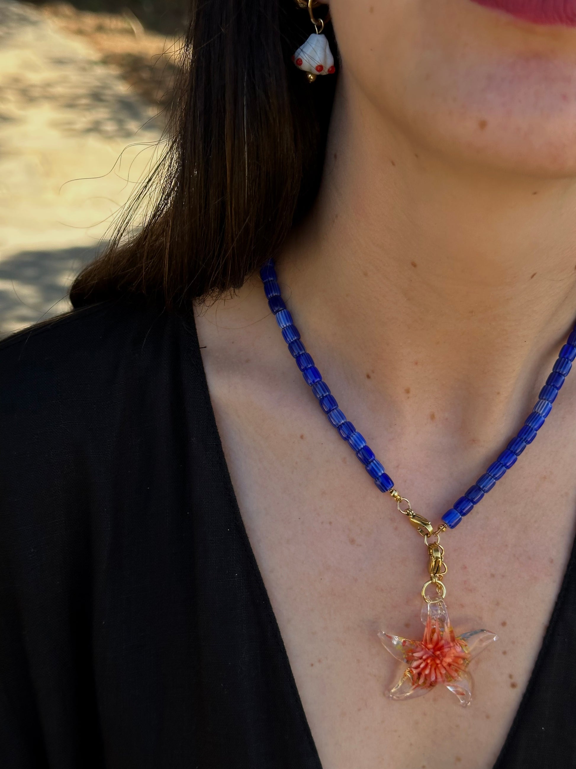 Charm cristal en forma de estrella de mar y enganche de acero inoxidable.