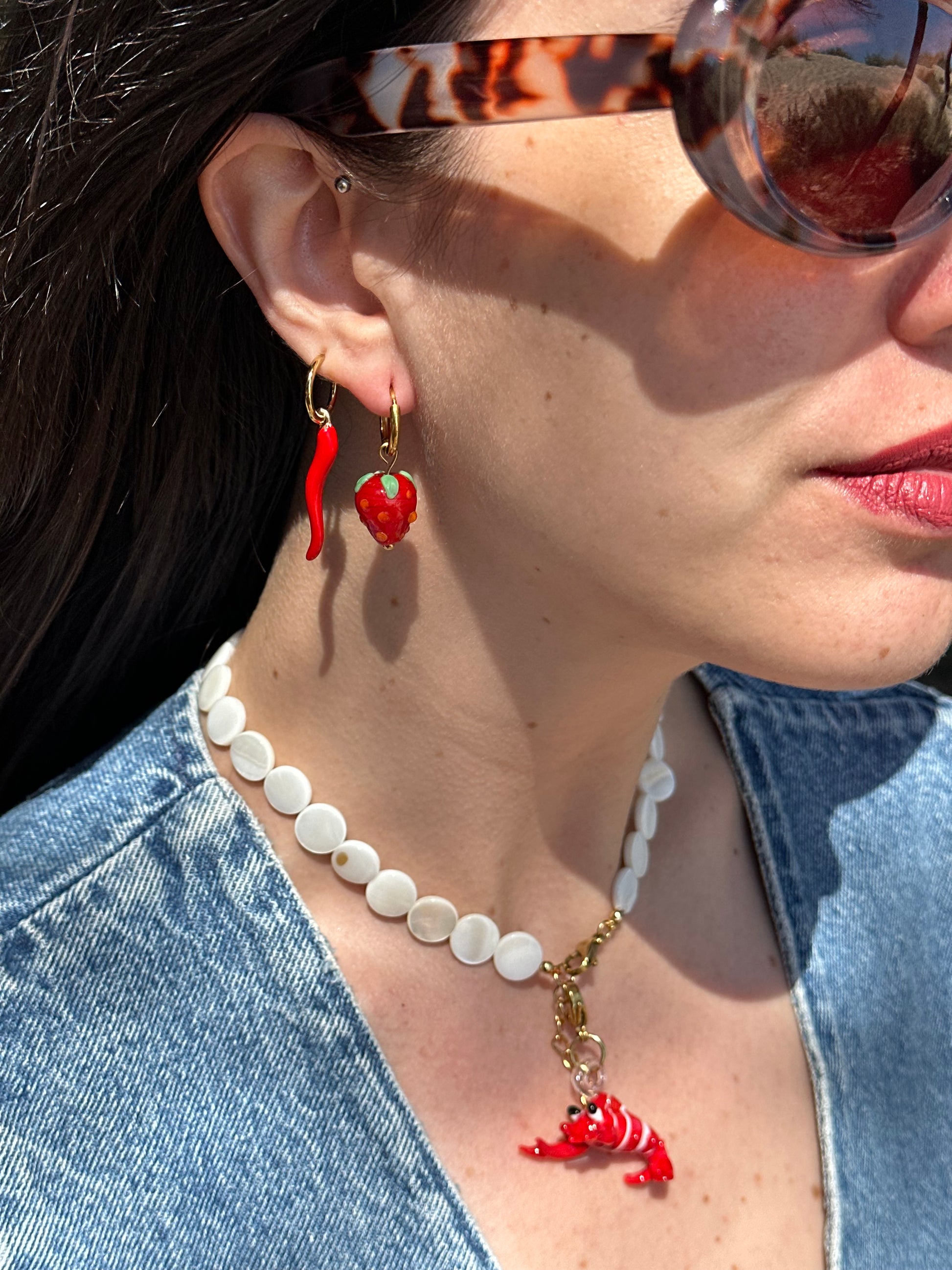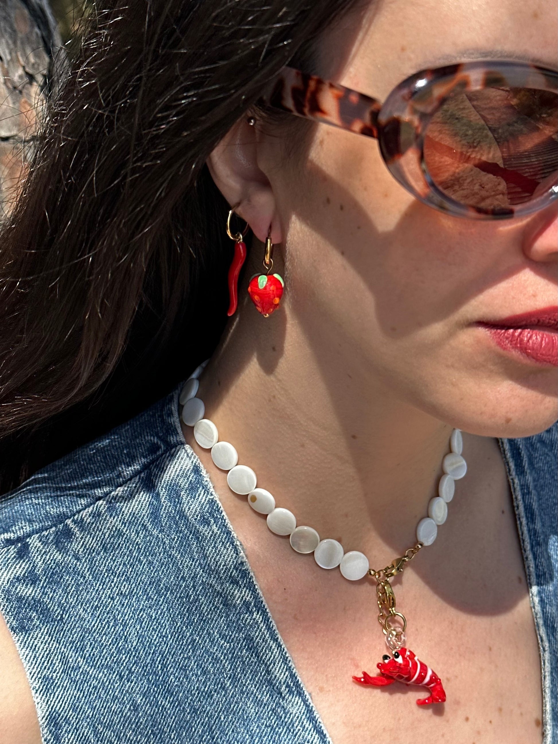 Charm cristal en forma de langosta y enganche de acero inoxidable.