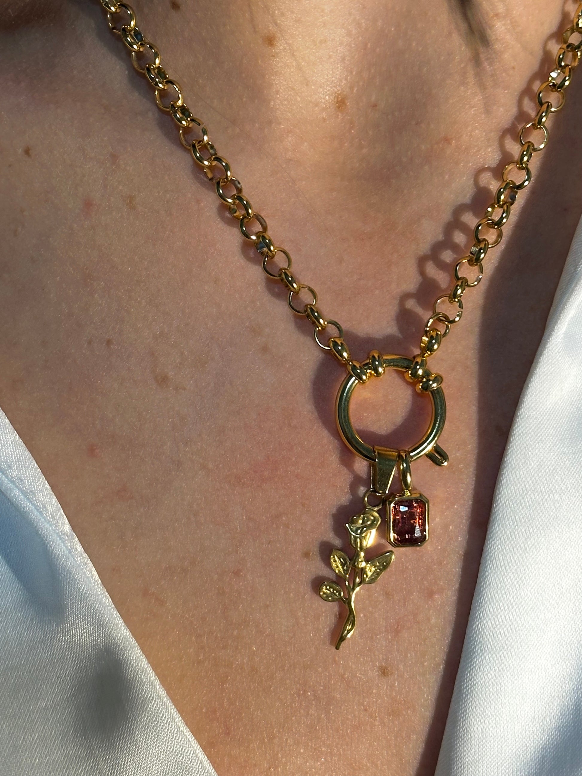 Este colgante simboliza el Rubí, piedra considerada la representante del amor, la pasión y el coraje.