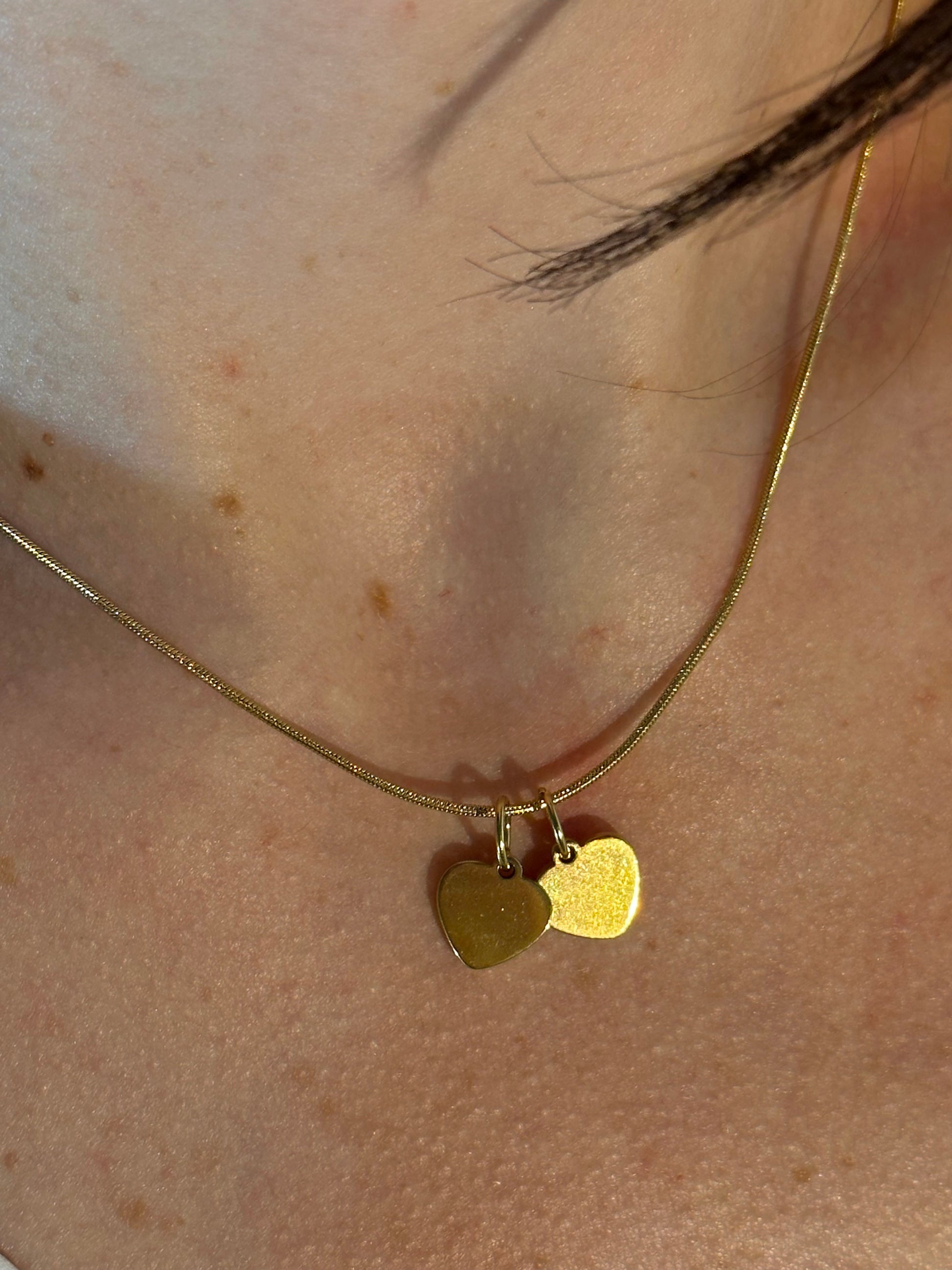 Collar de acero inoxidable personalizable, con cadena fina y colgantes de corazones. Se puede elegir un corazón, dos, tres o cuatro. Y se pueden personalizar cada uno de ellos con una inicial o número grabado.