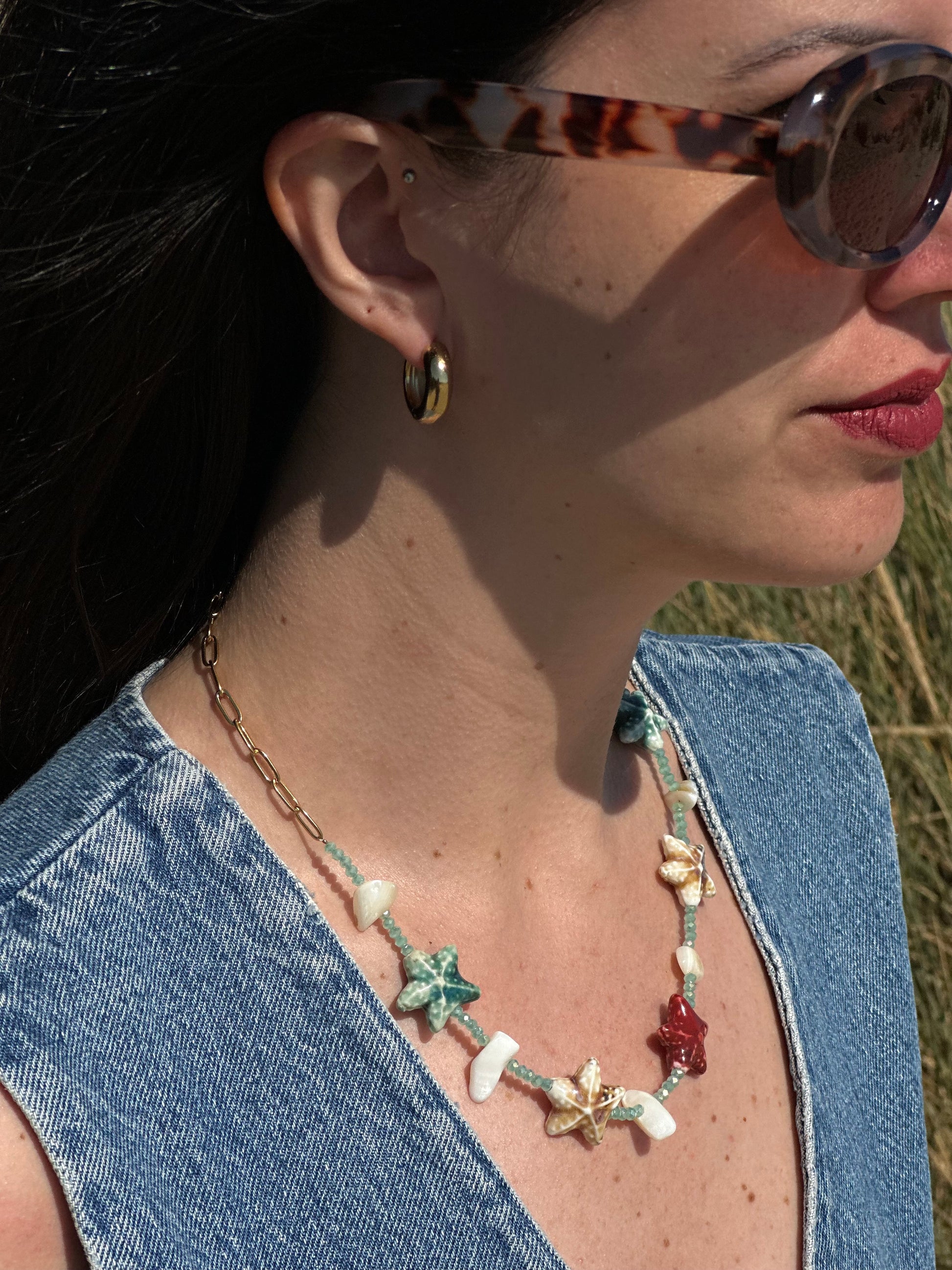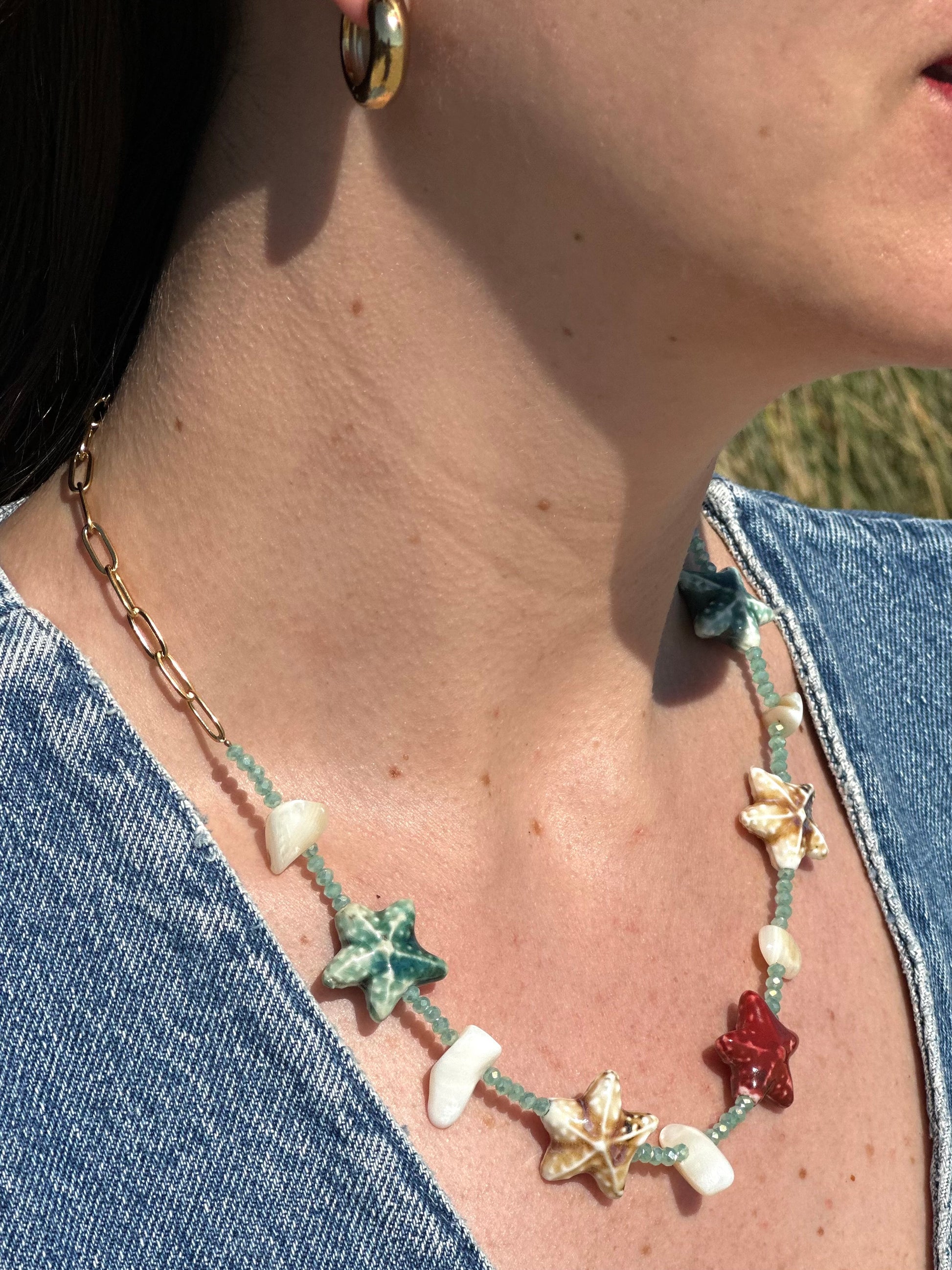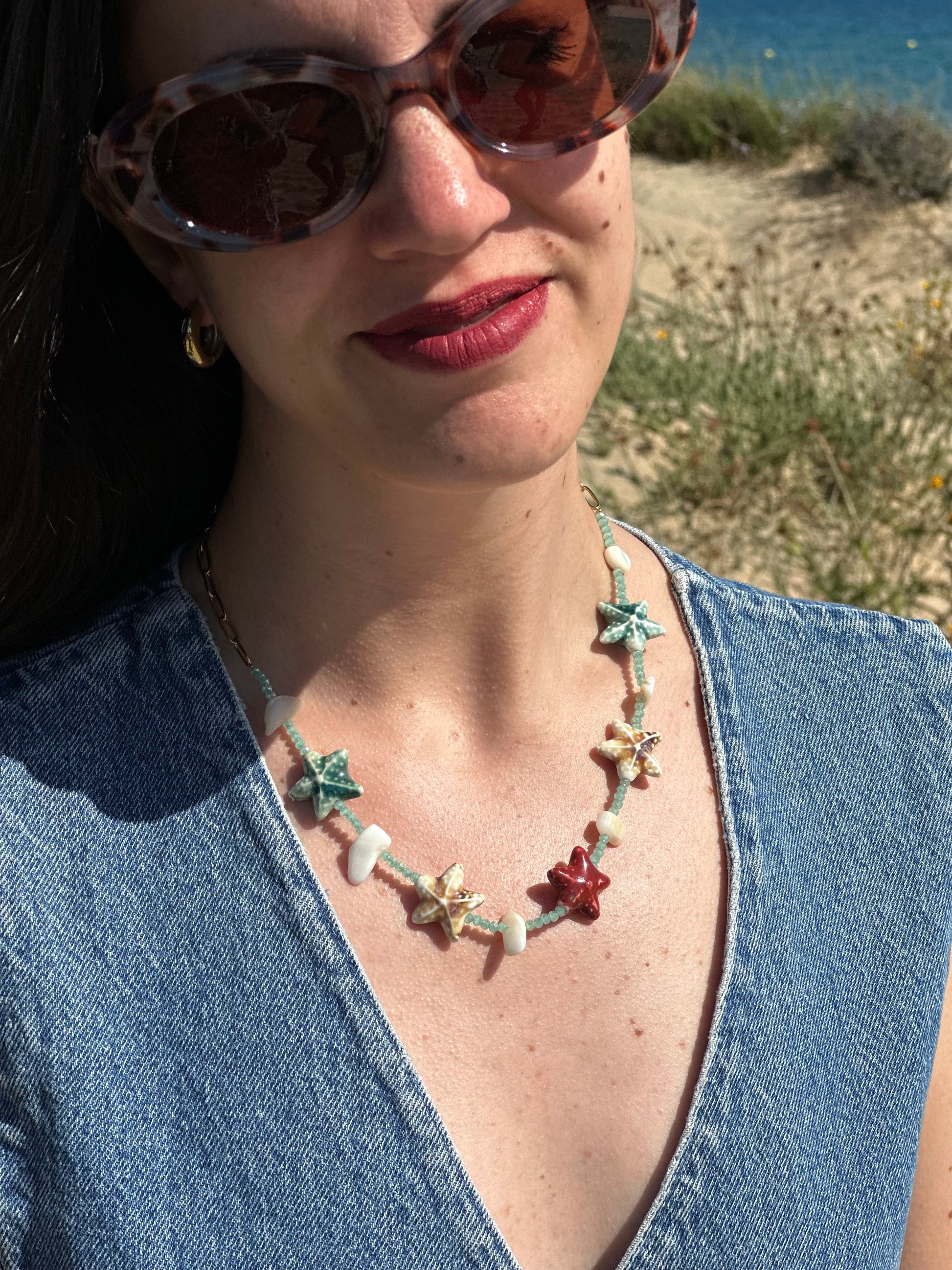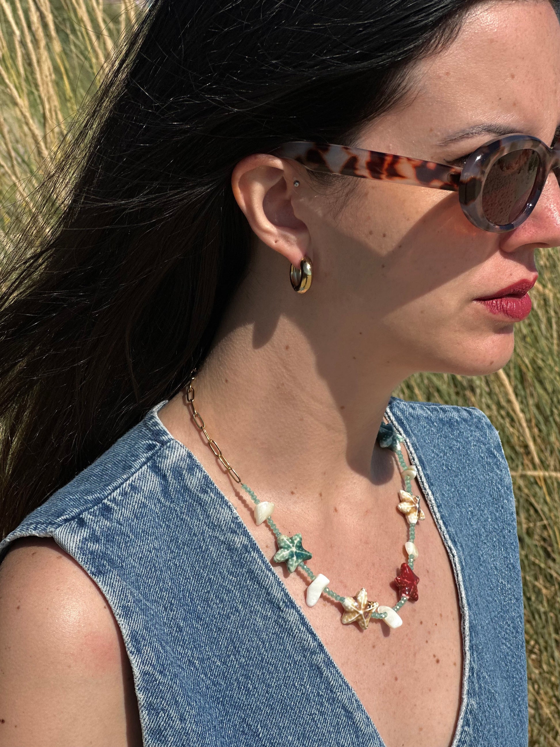 Collar combinación de cuentas y cadena de acero inoxidable.