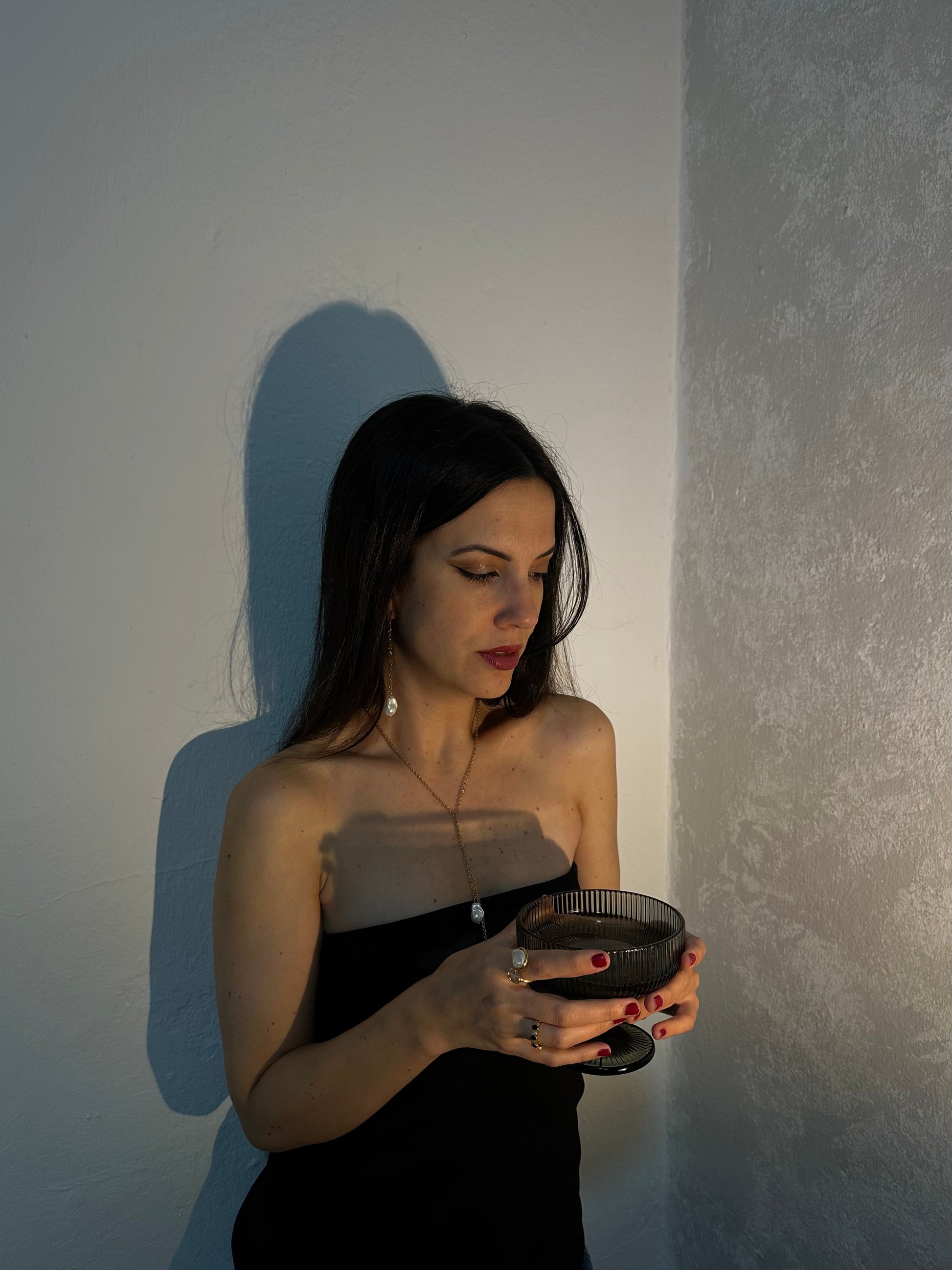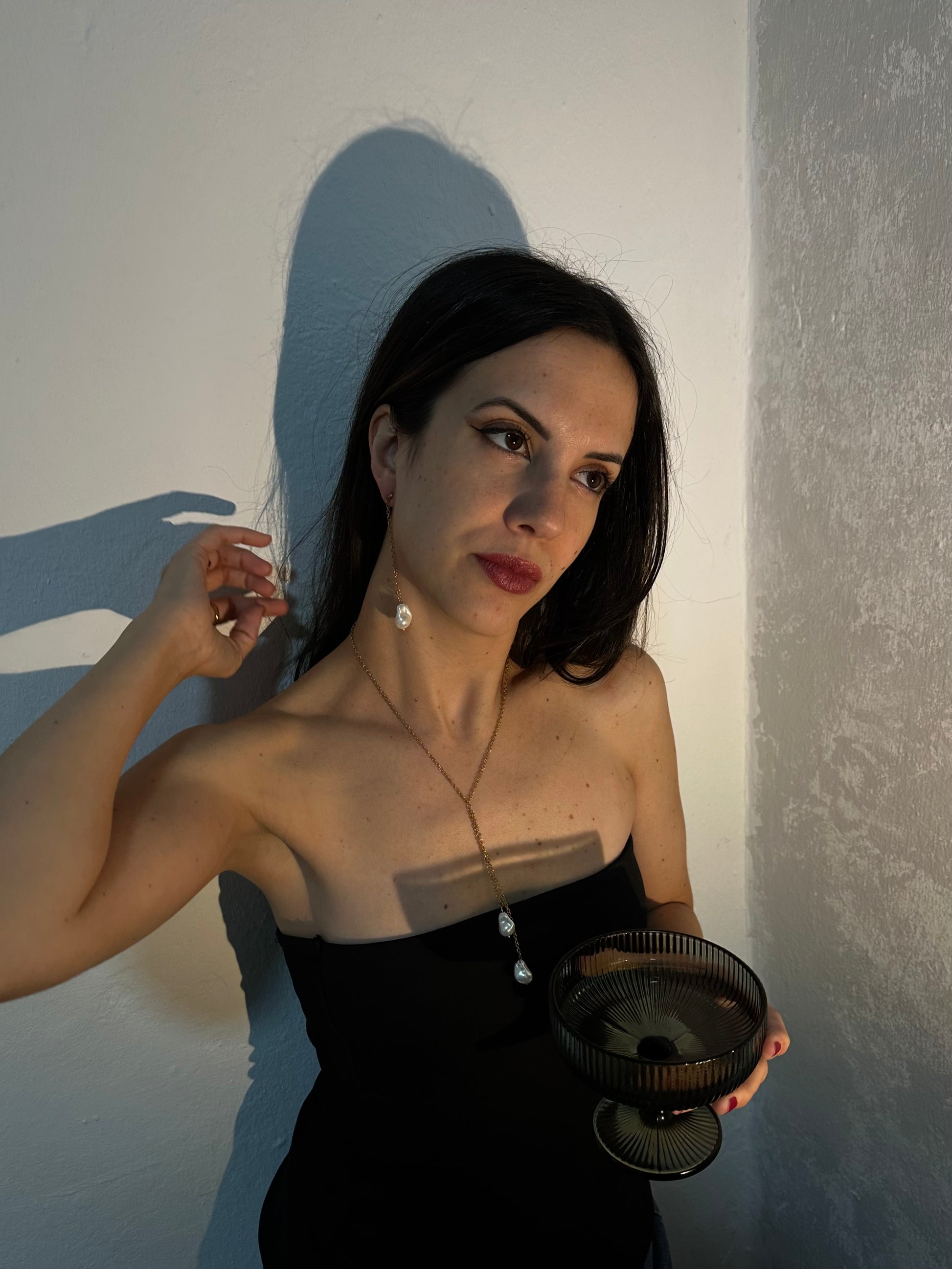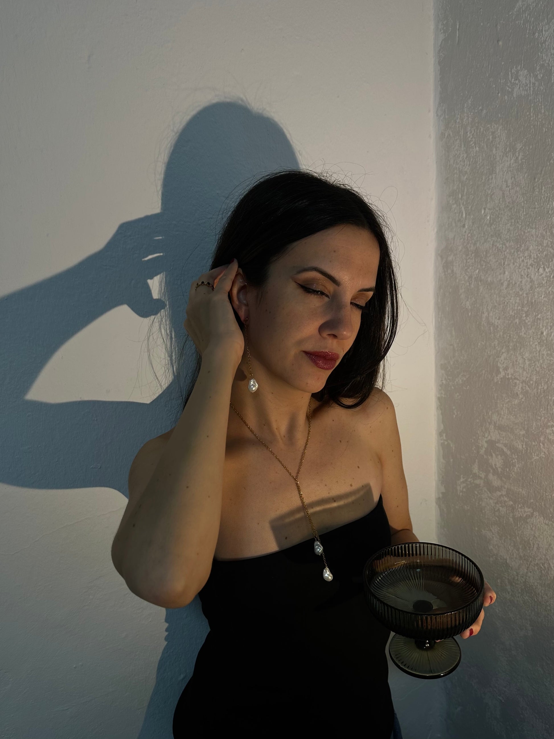 Collar combinación de cadena fina en acero inoxidable y doble perla natural.