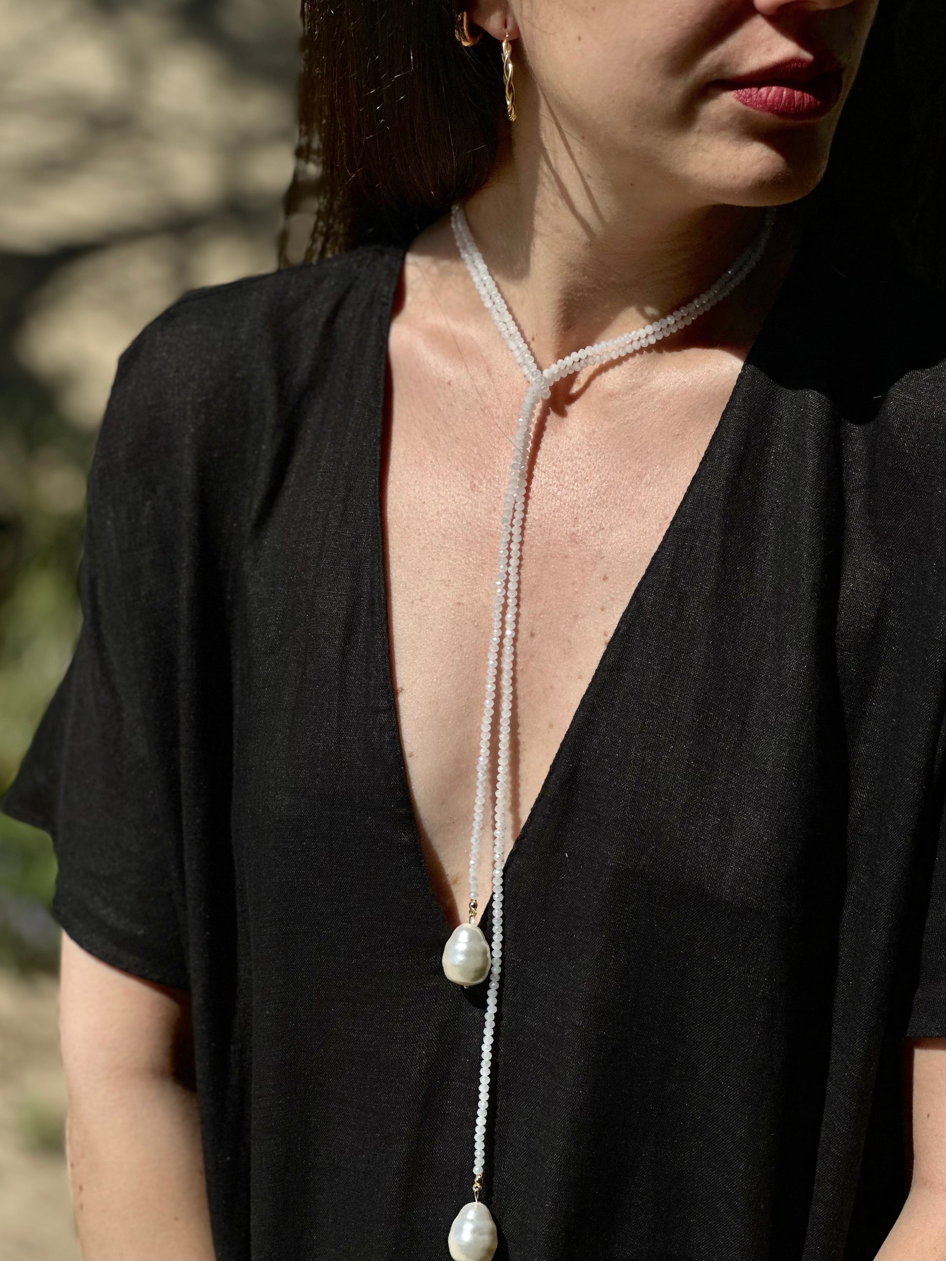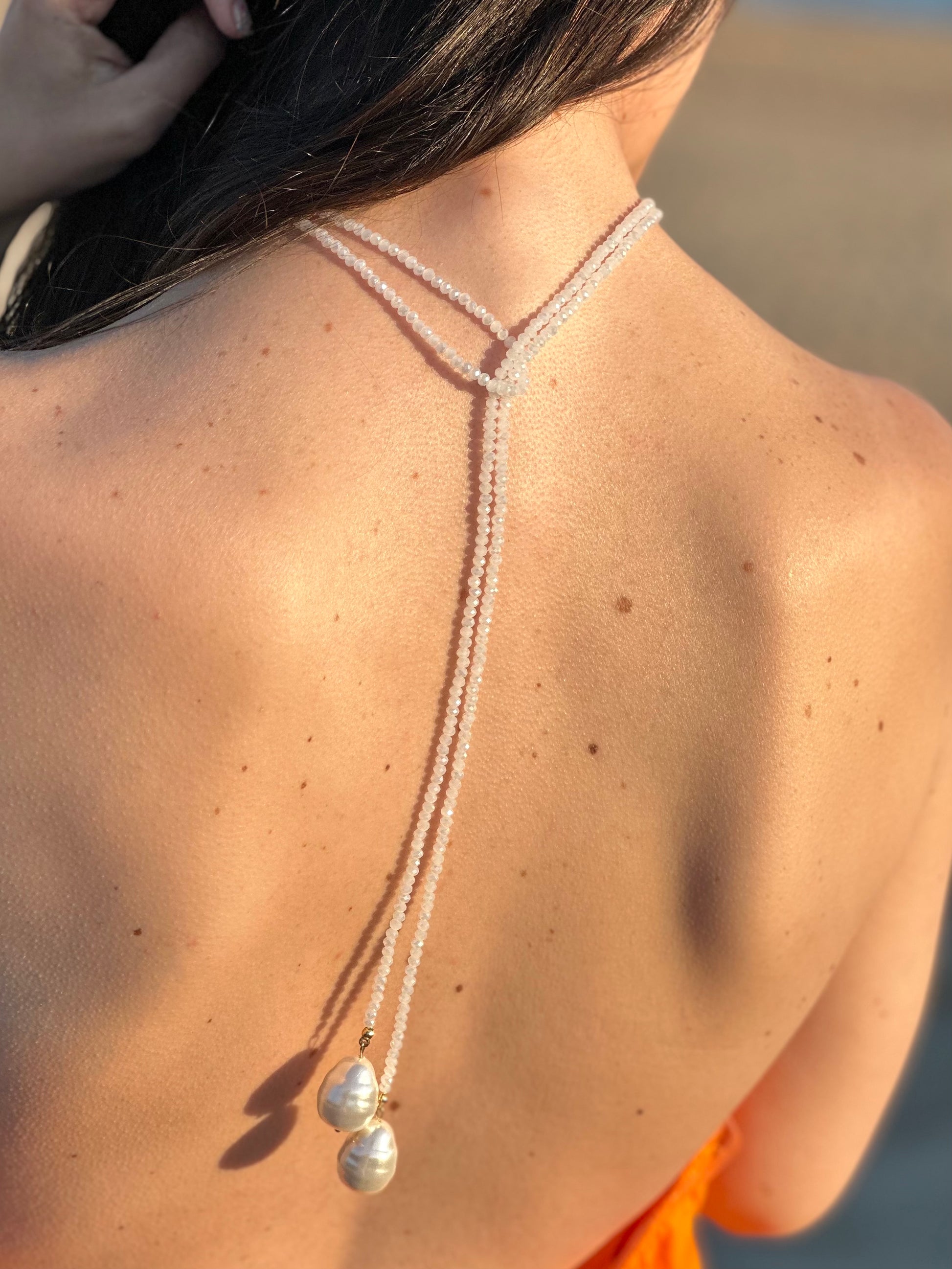 Collar hecho a mano con cuentas y con perlas.