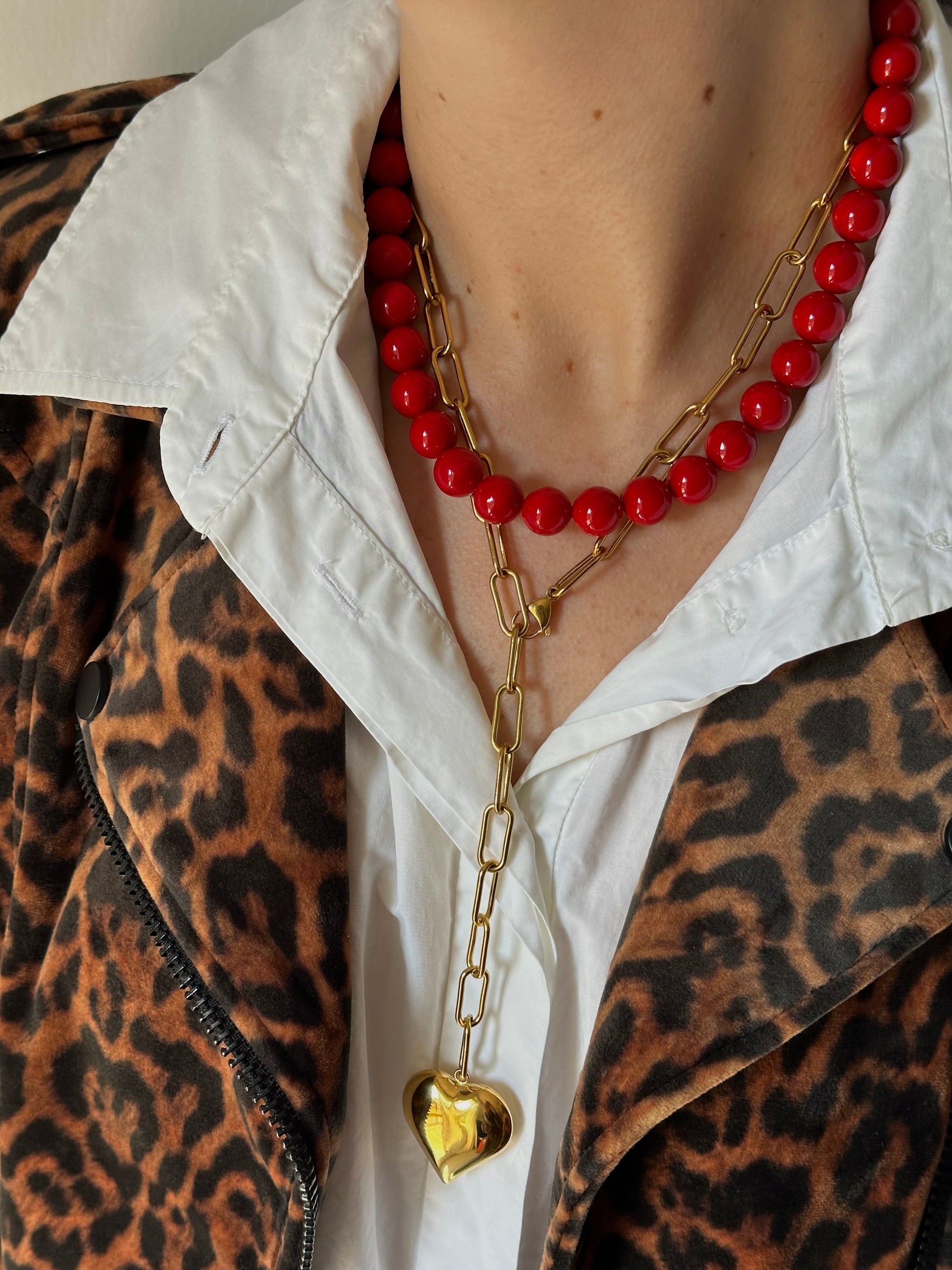 Collar cadena larga de eslabones y corazón dorado en acero inoxidable. Cierre multiposicion.