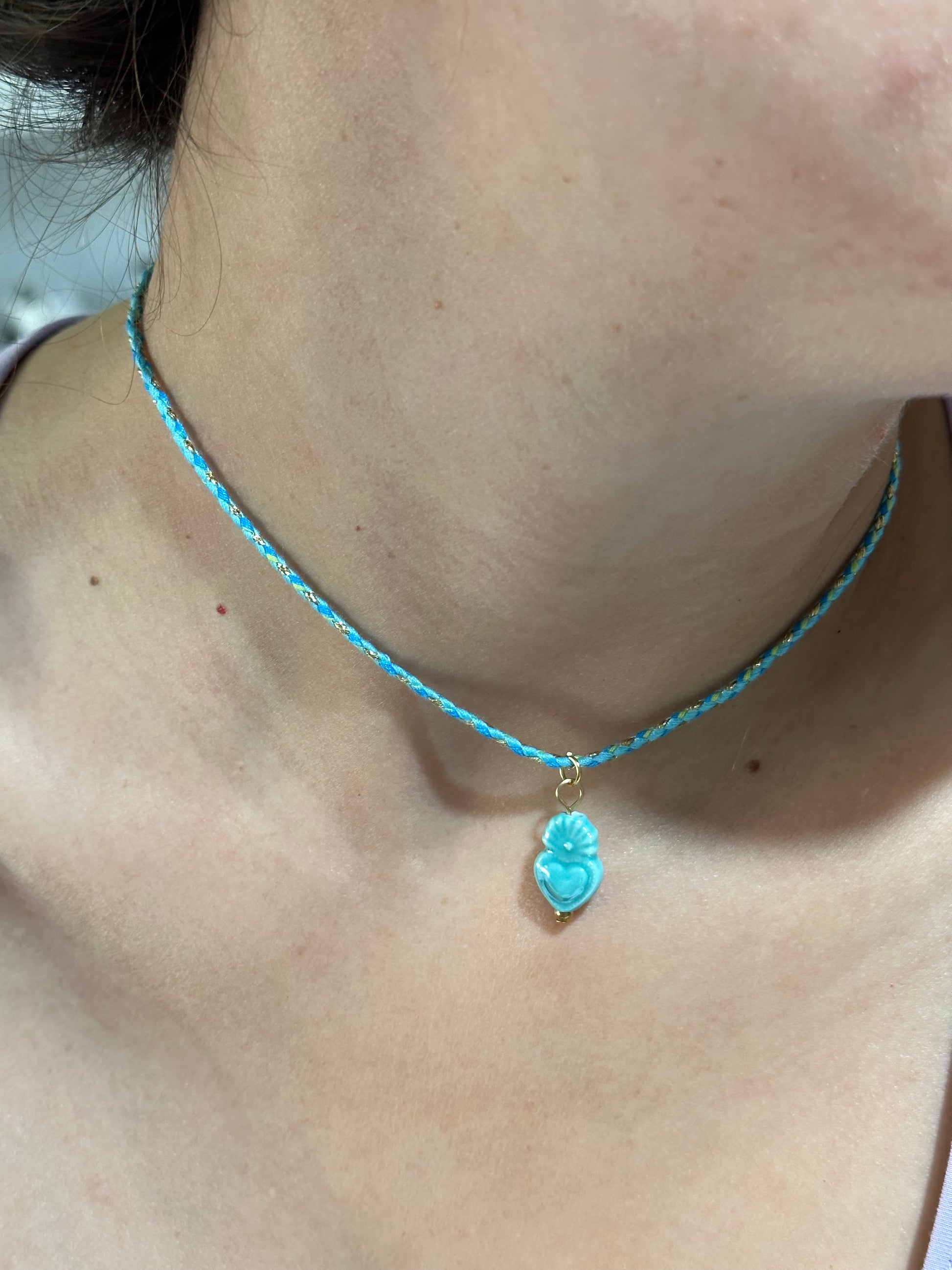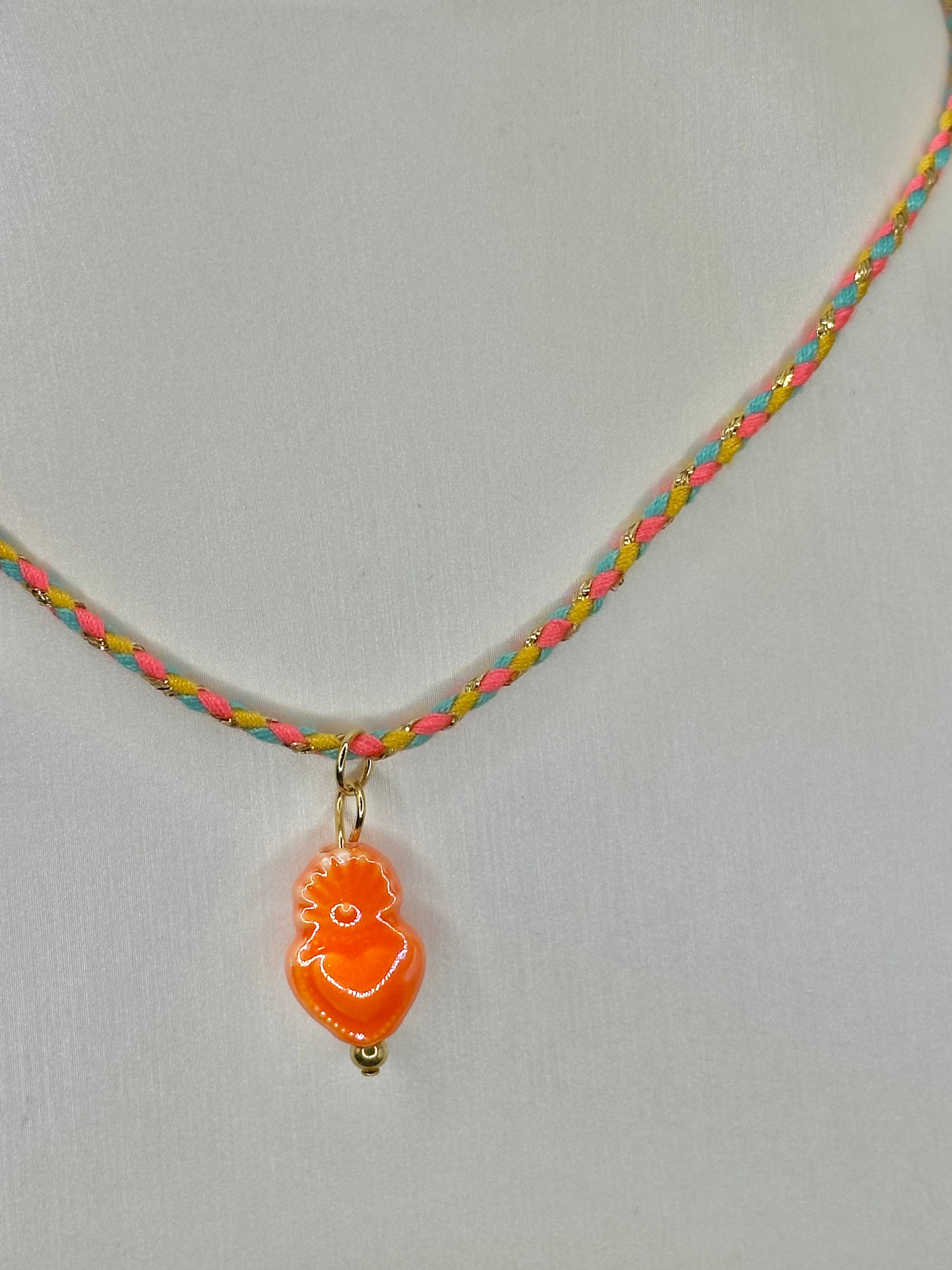 Collar de hilos trenzado con charm incorporado. Cuatro colores disponibles. Cierre en acero inoxidable.