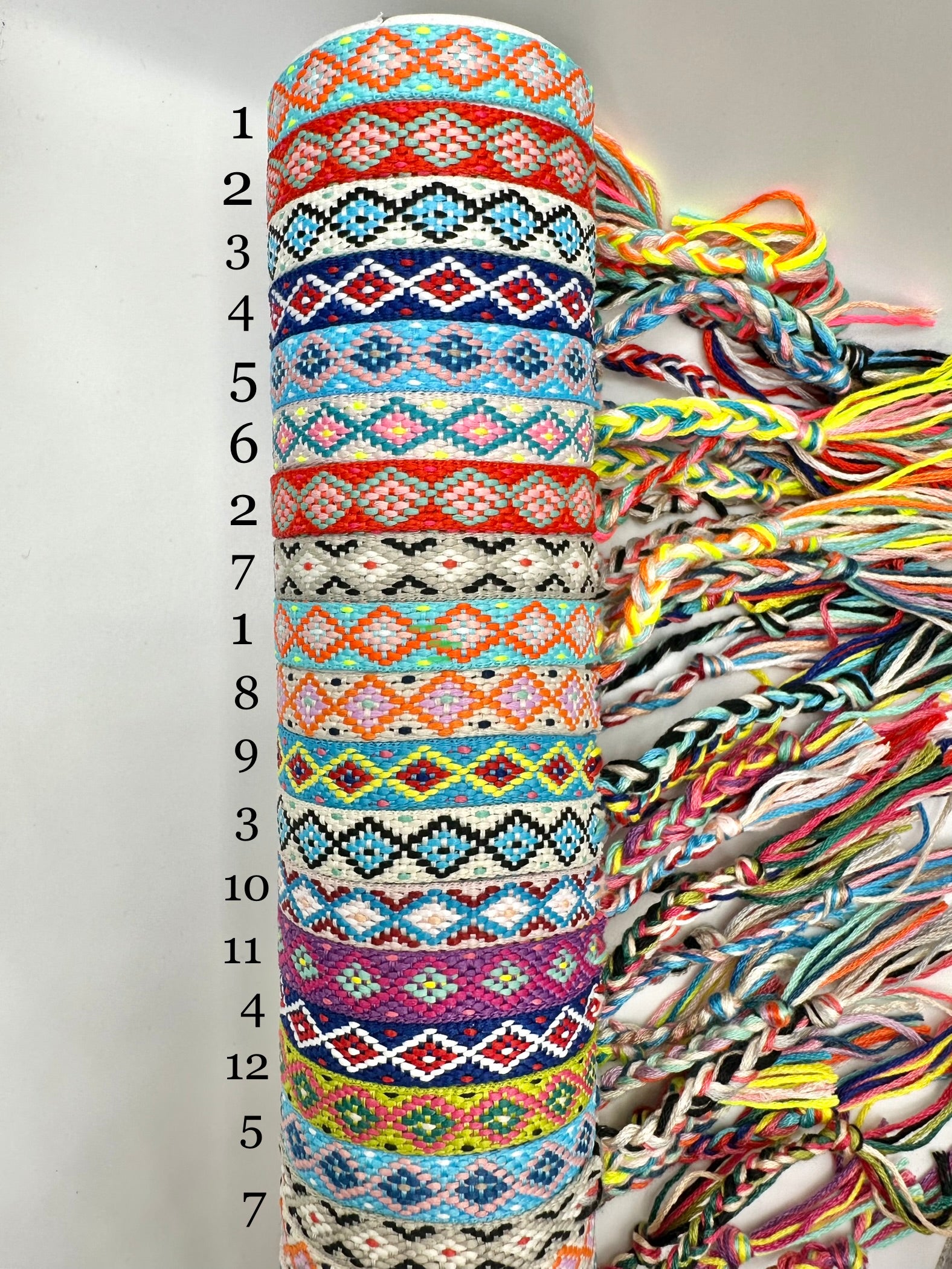 Pulsera o tobillera de hilo de 12 colores diferentes.