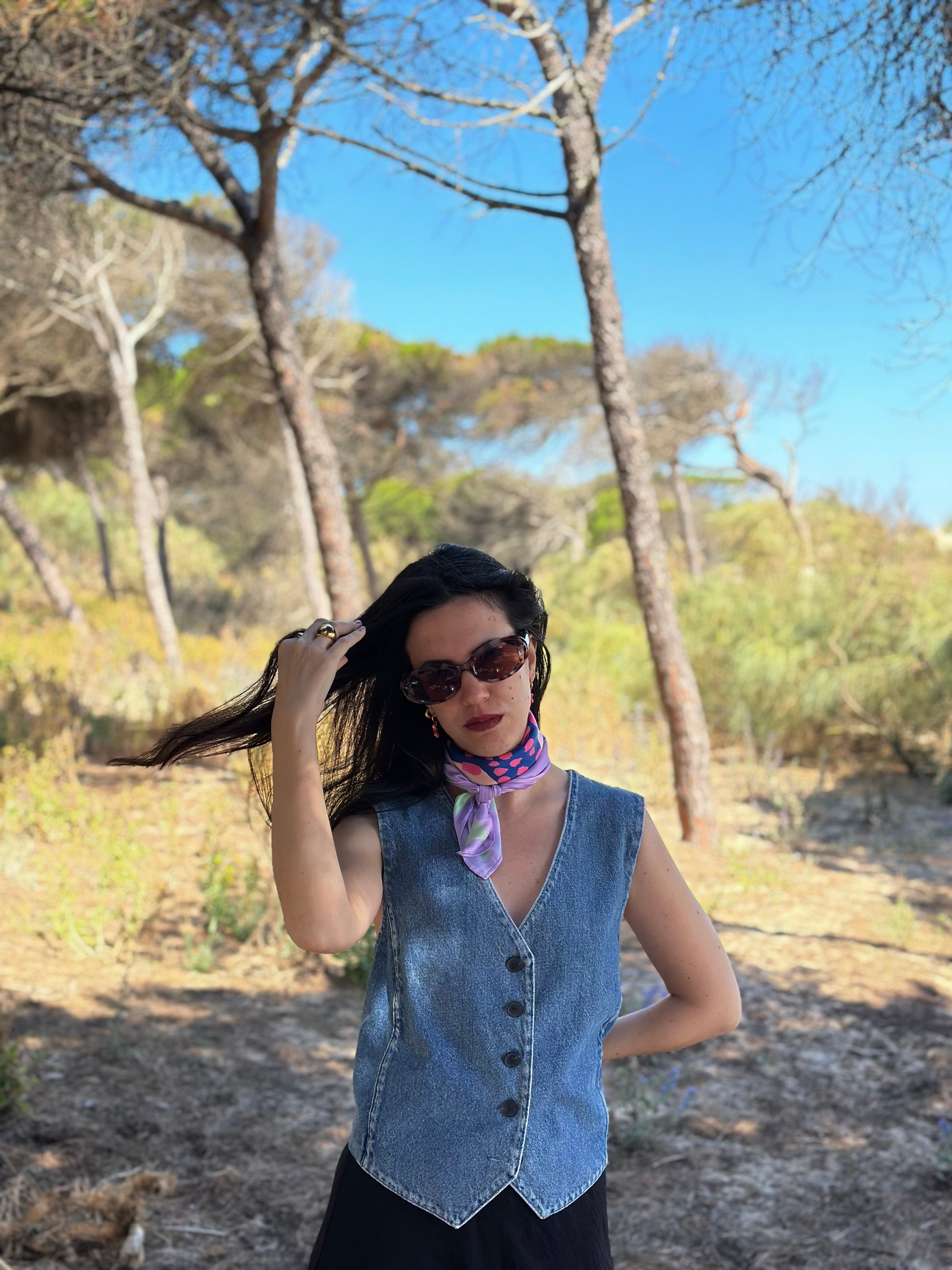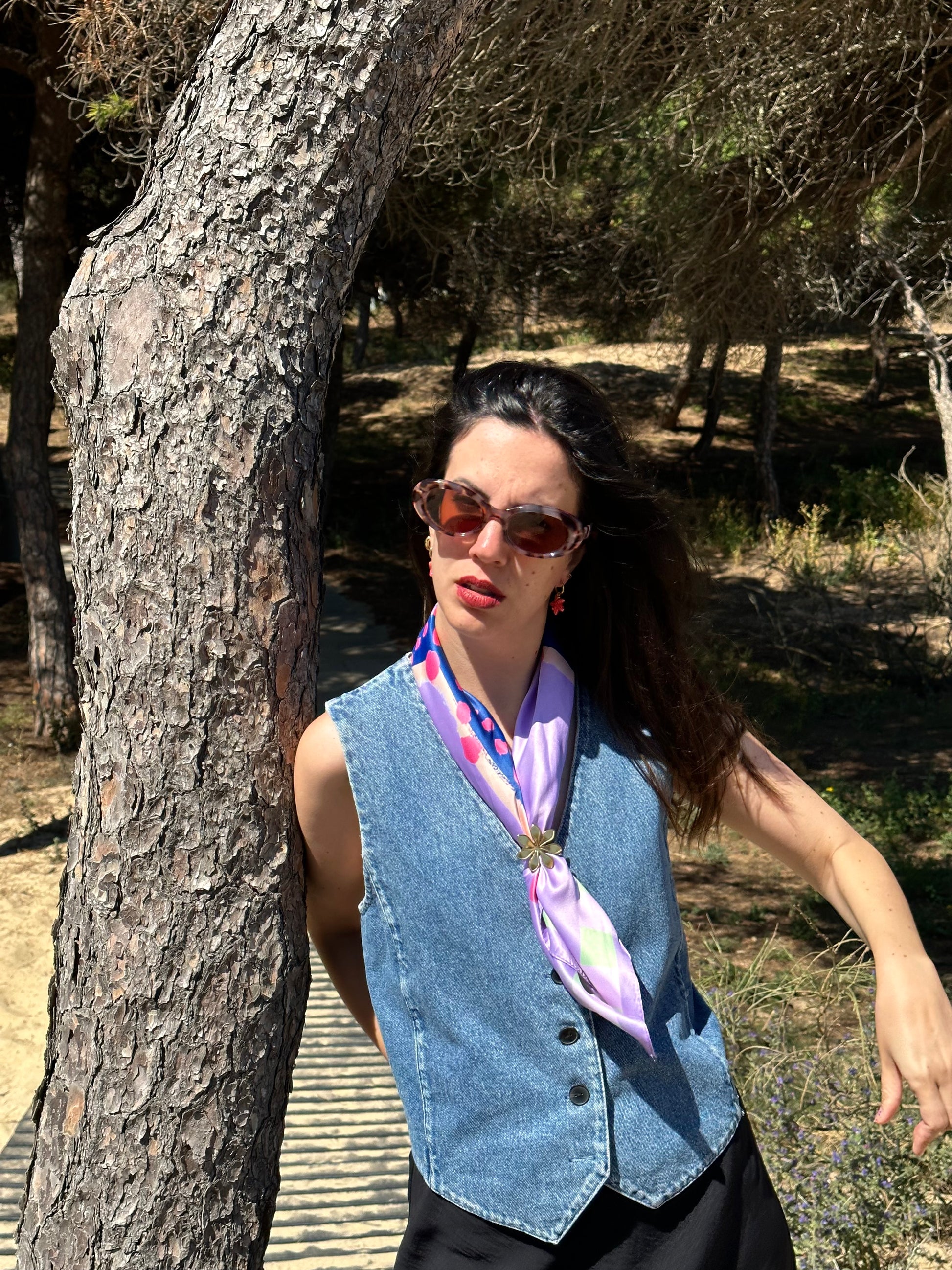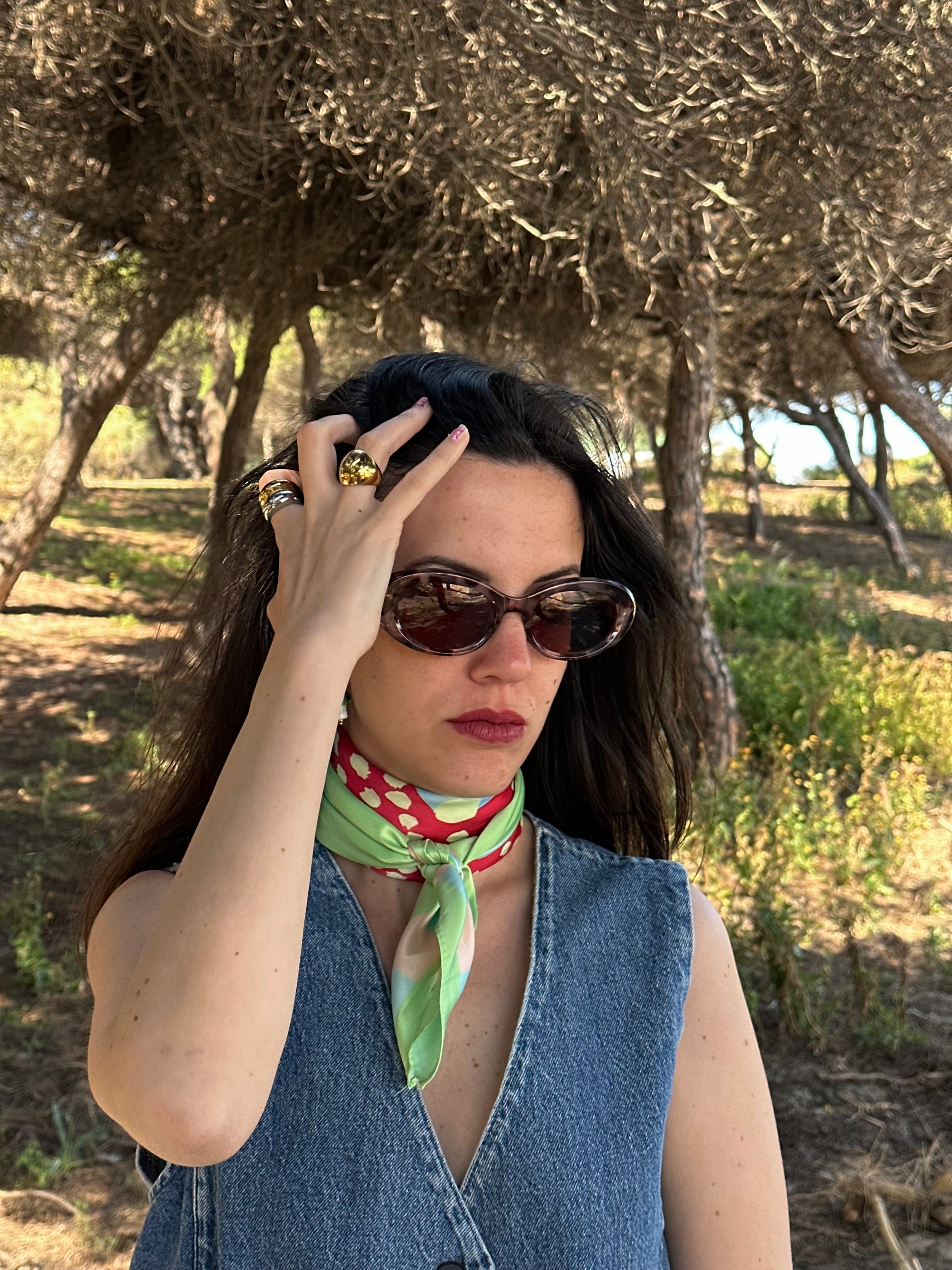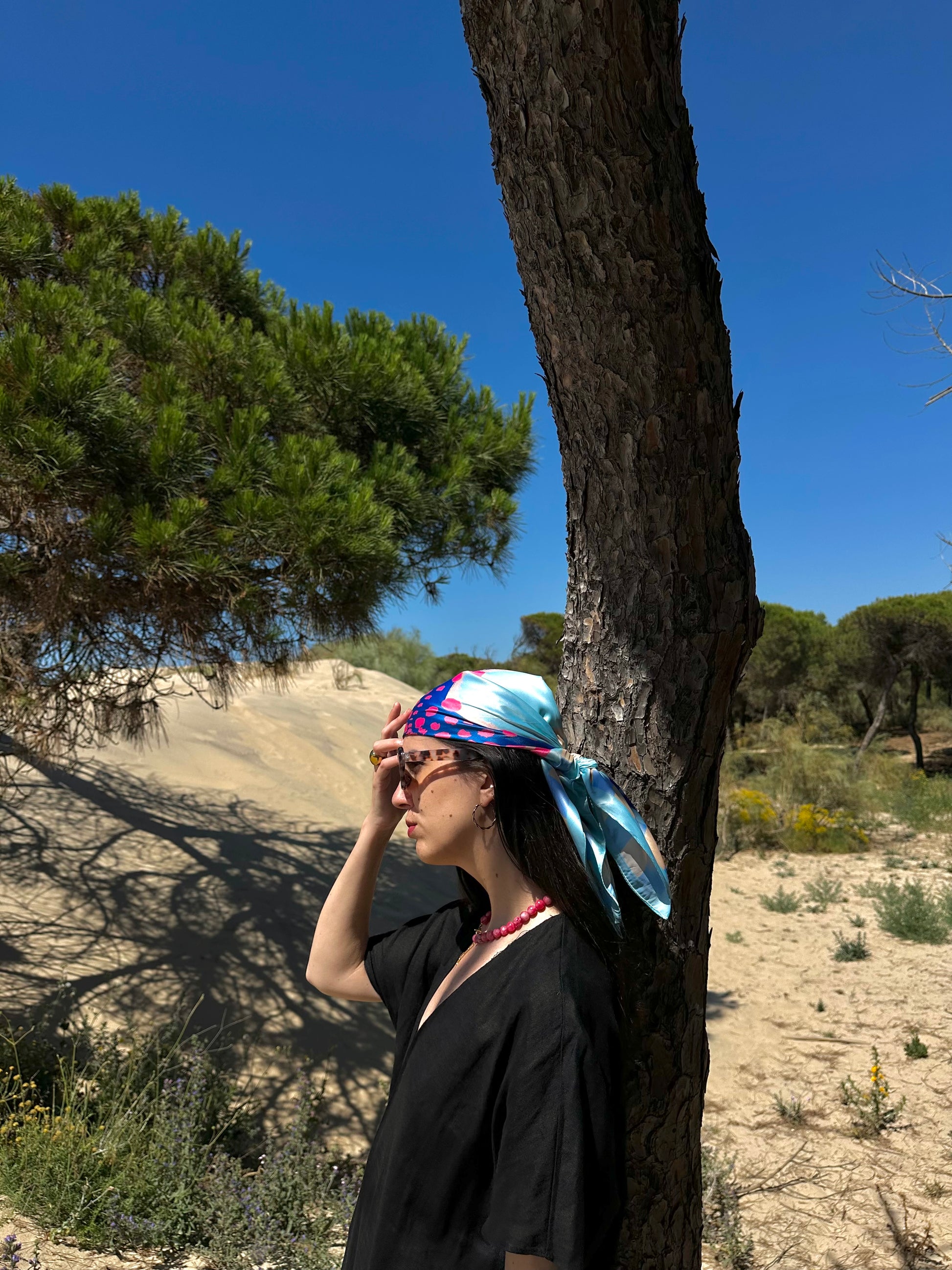 Pañuelo de seda estampado disponible en cuatro colores diferentes.