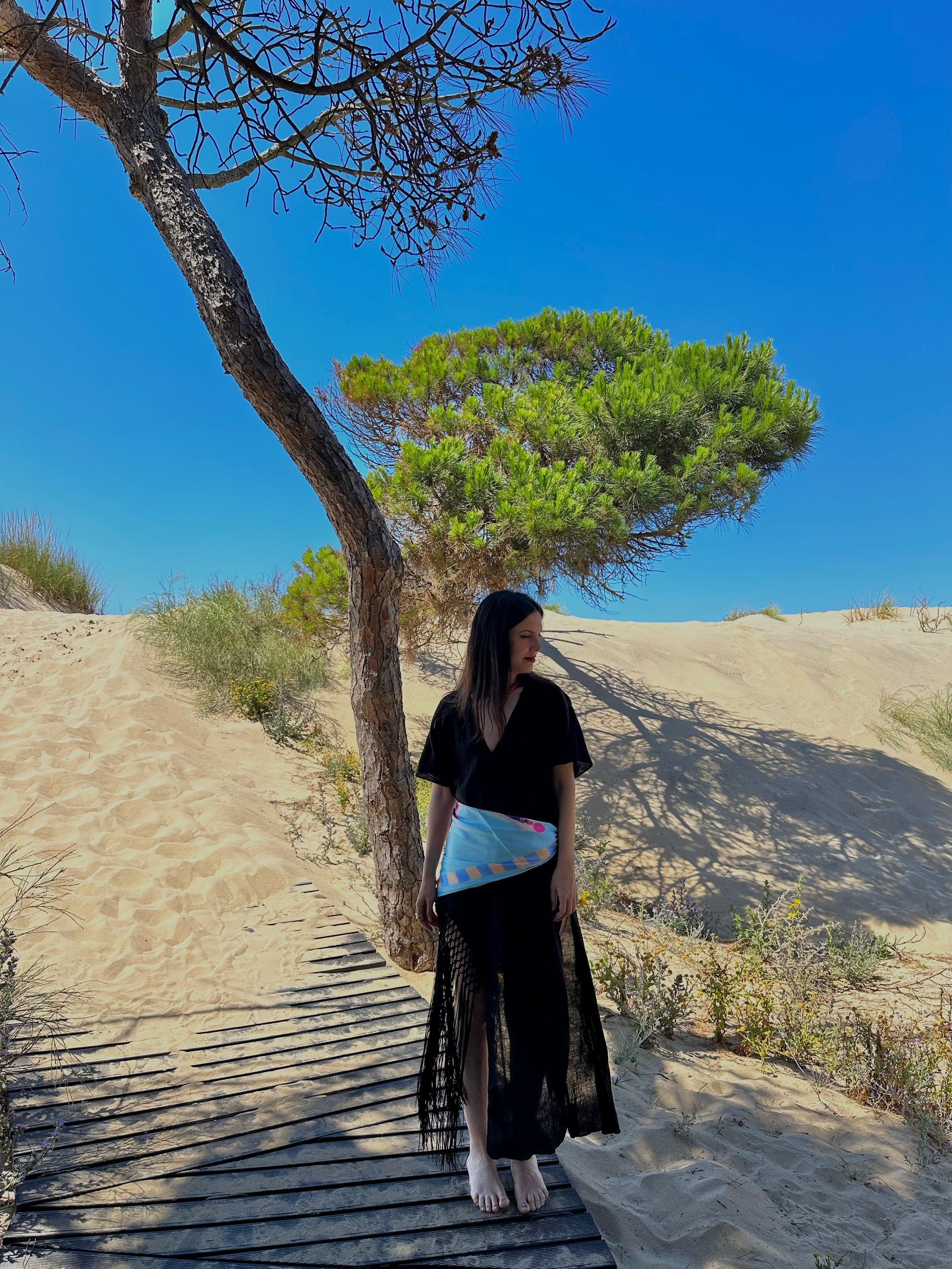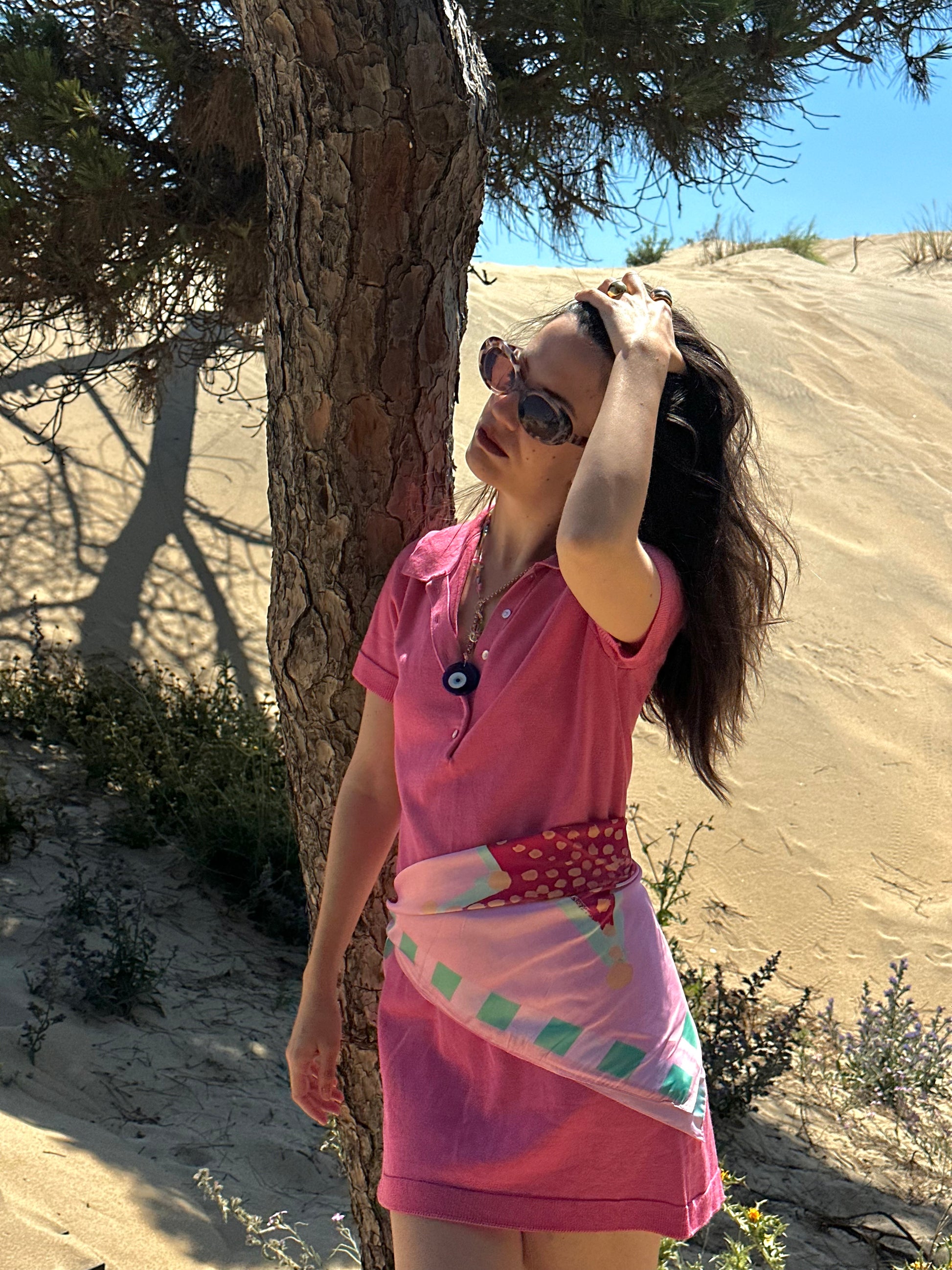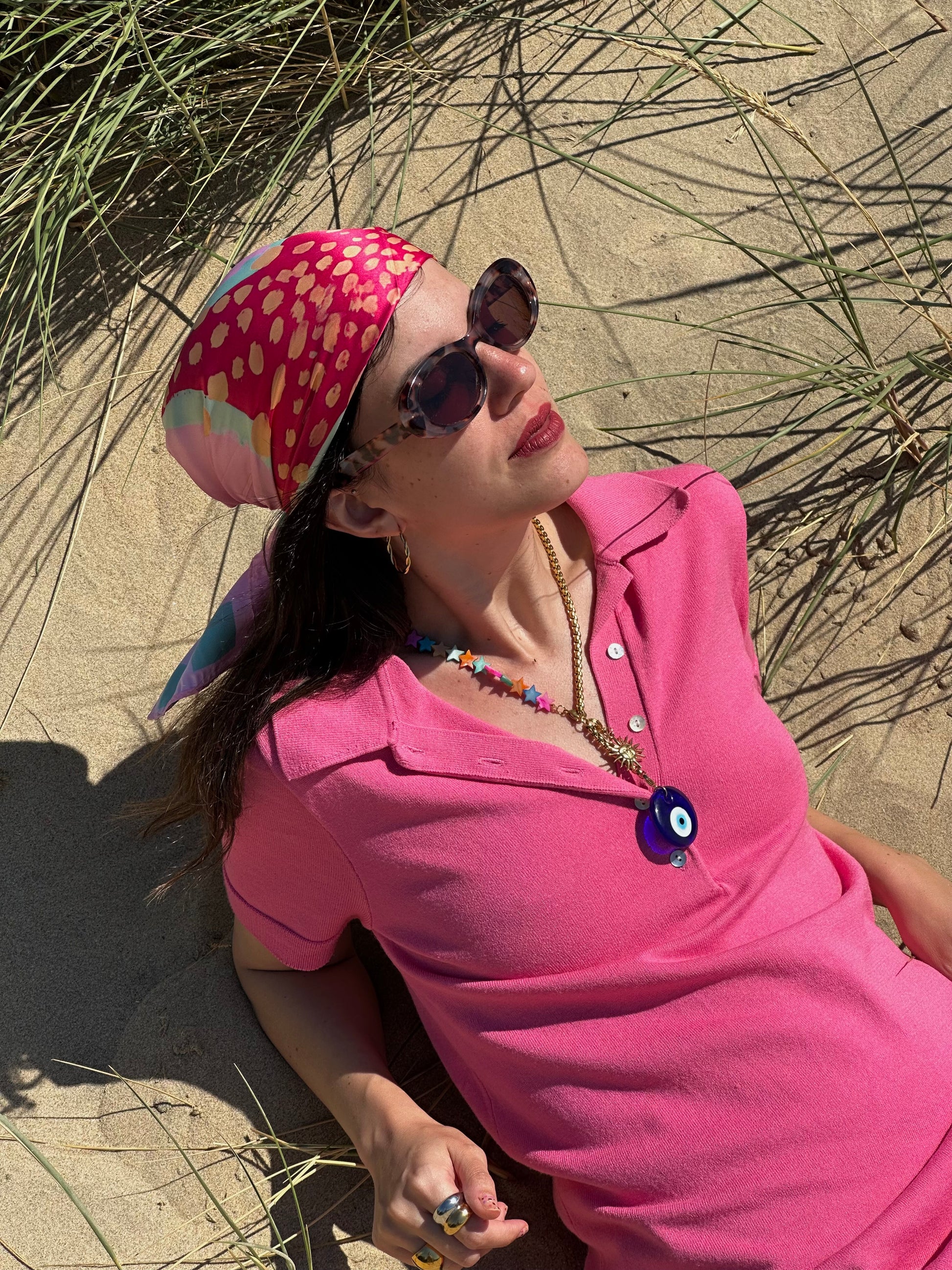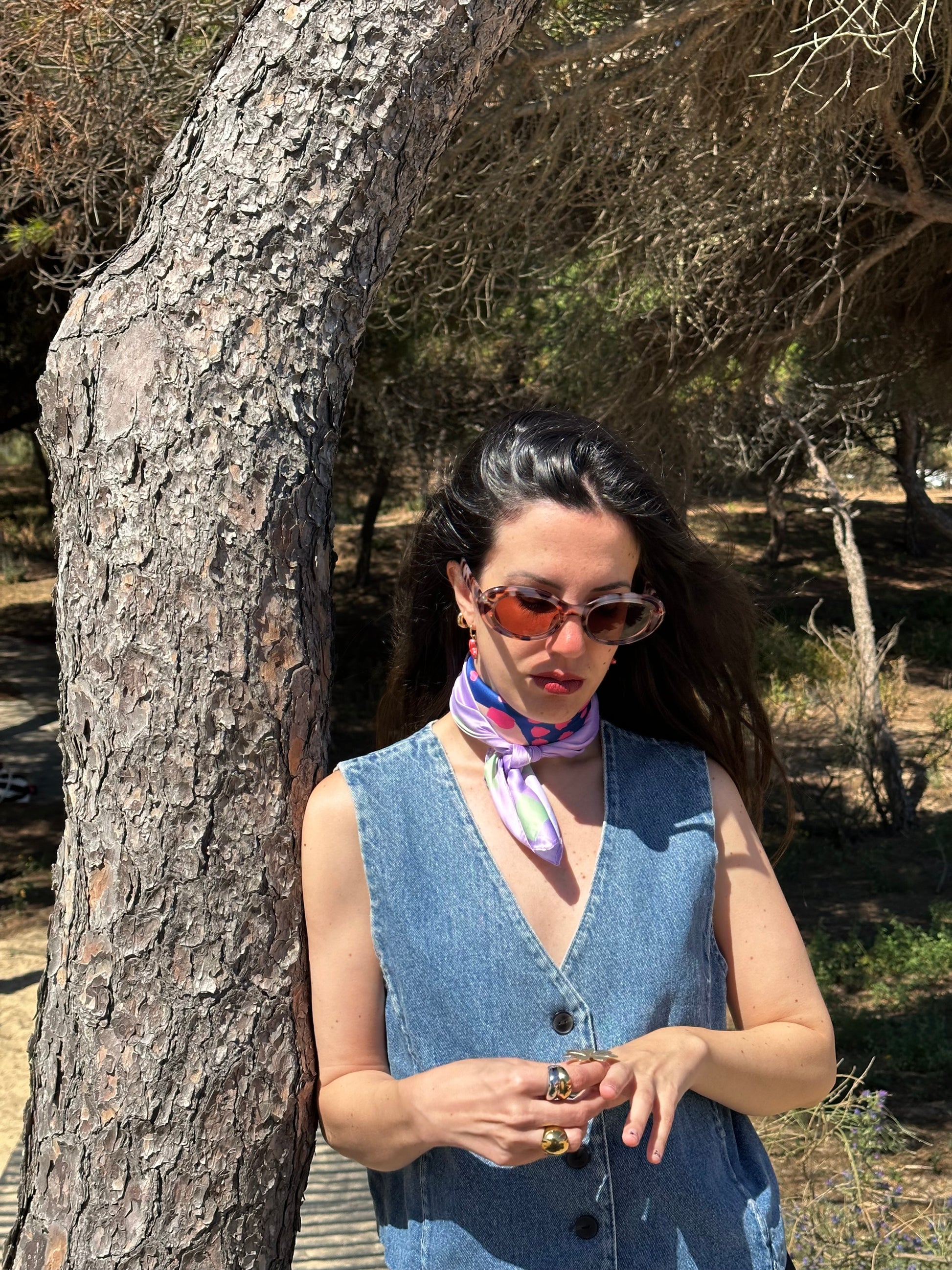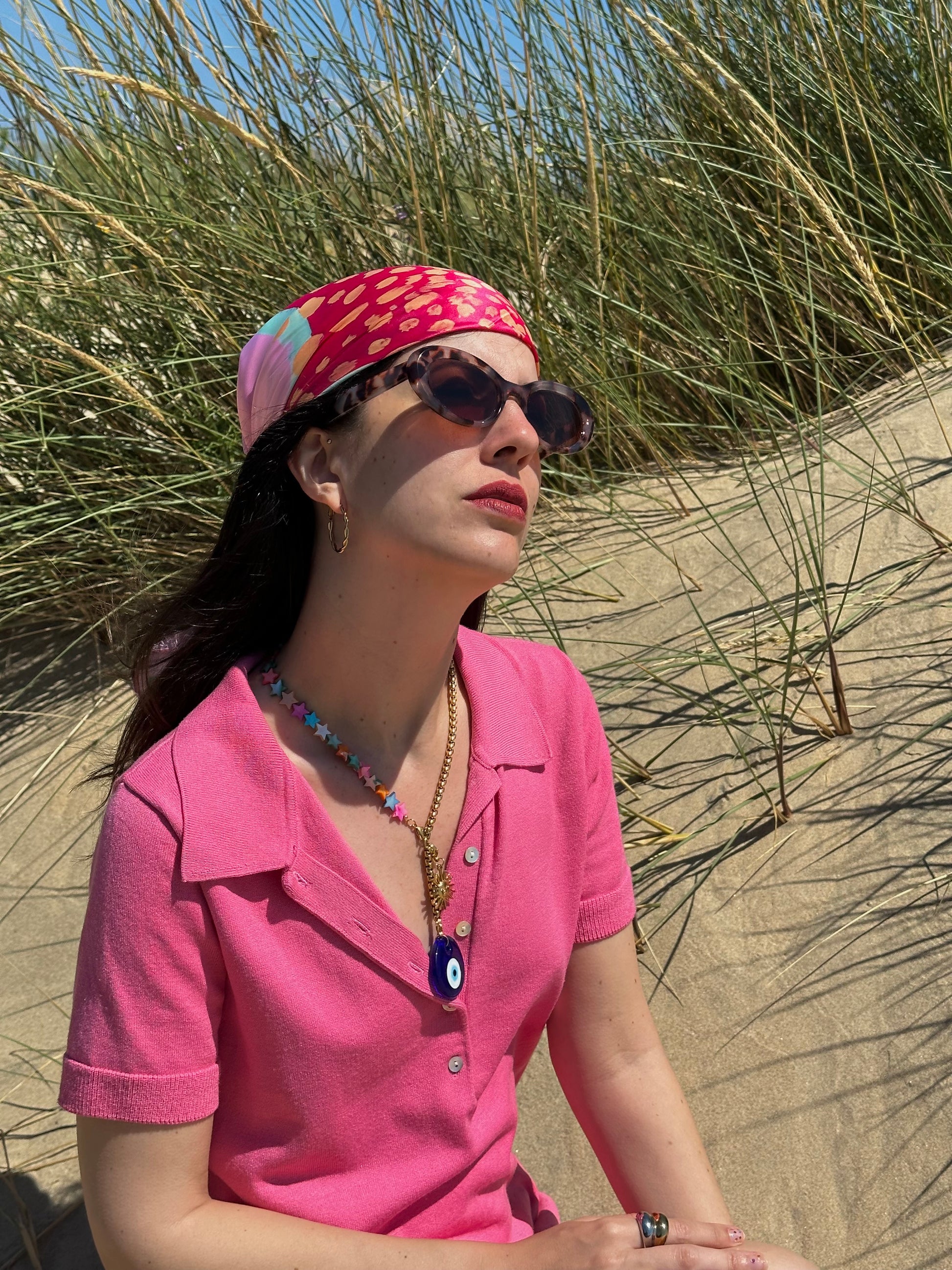 Pañuelo de seda estampado disponible en cuatro colores diferentes.