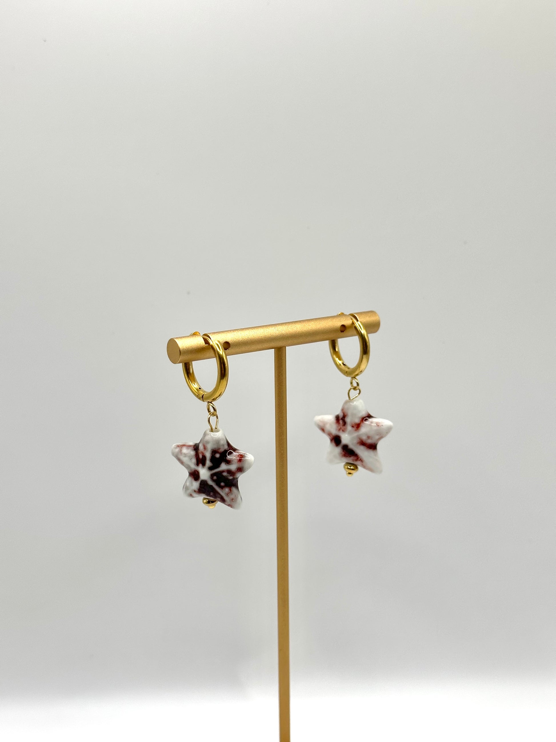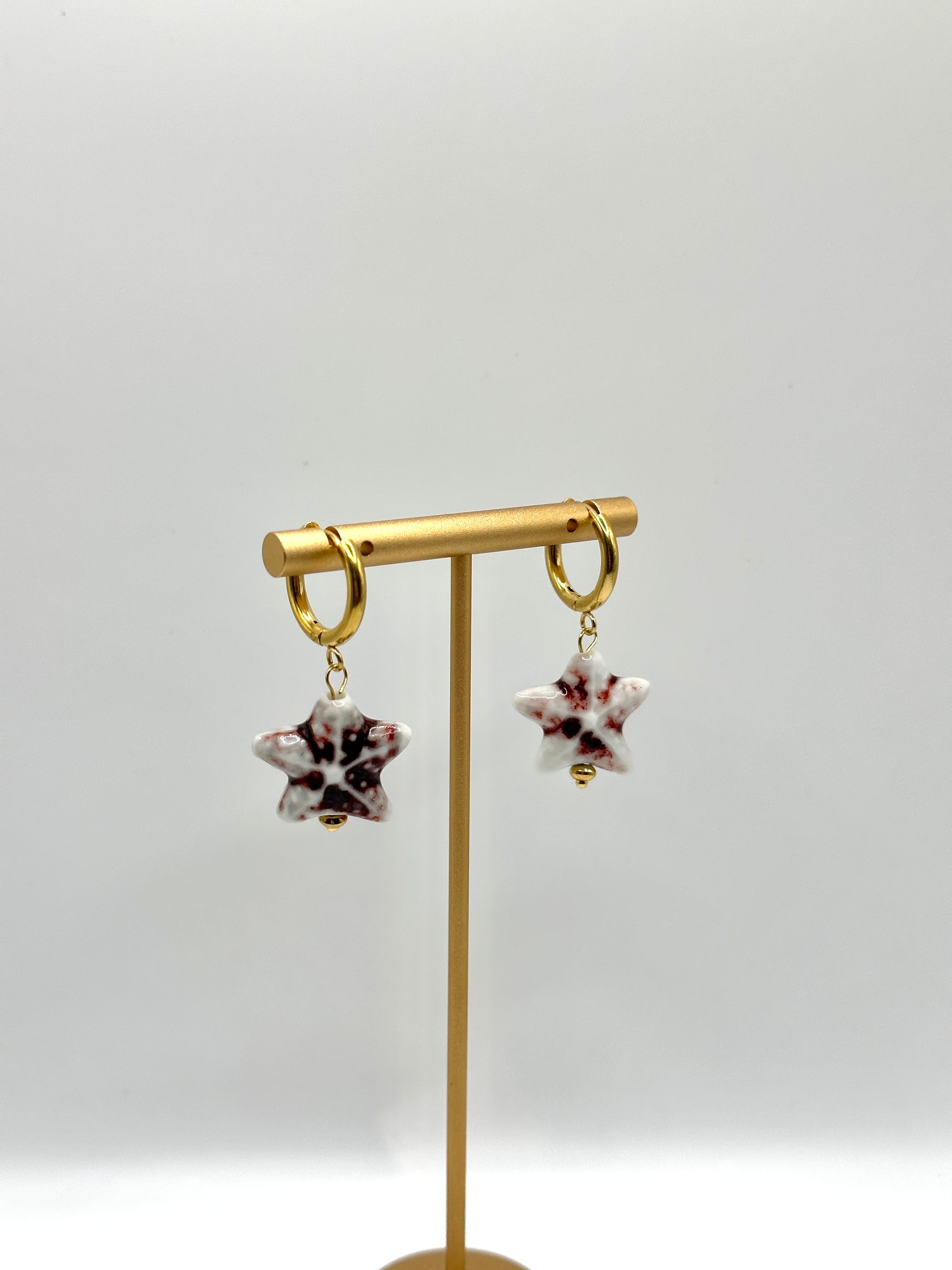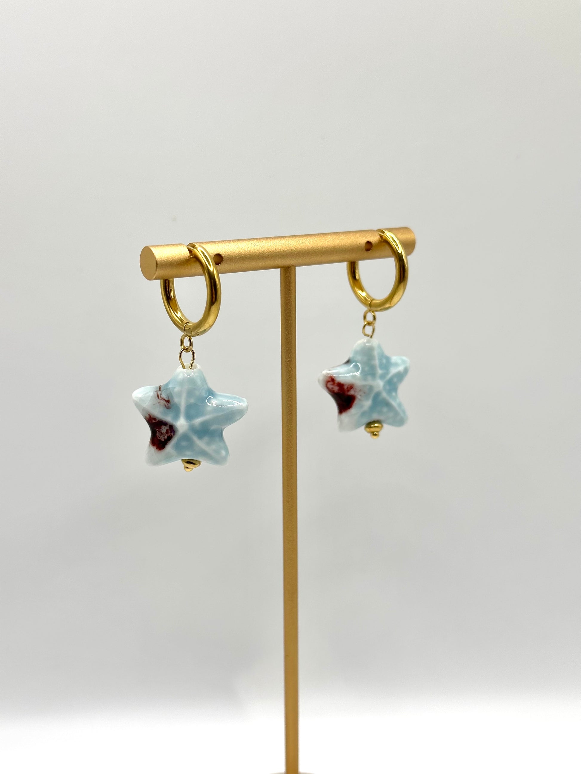 Pendientes de acero inoxidable y estrella de cerámica. Hechos a mano.