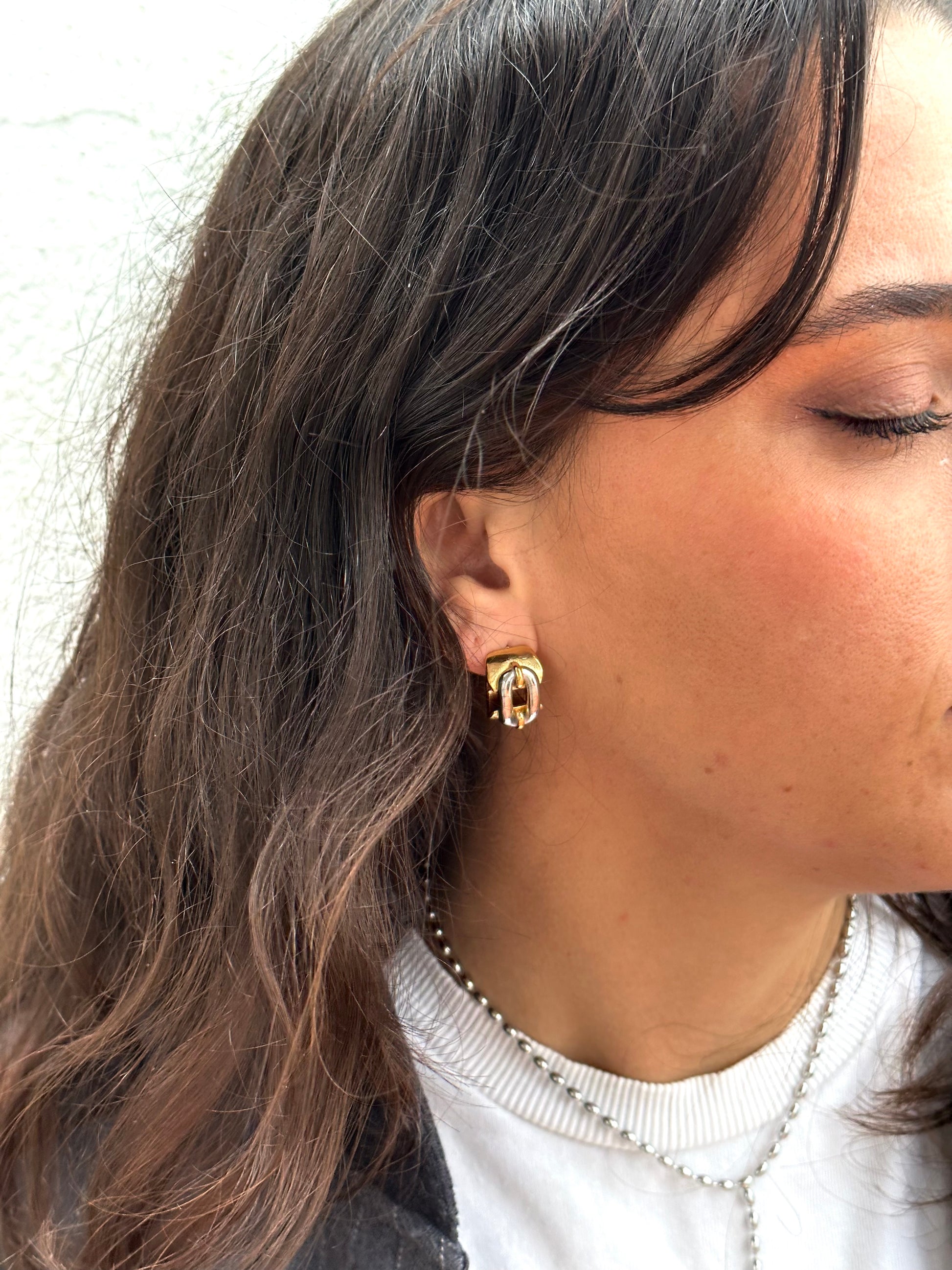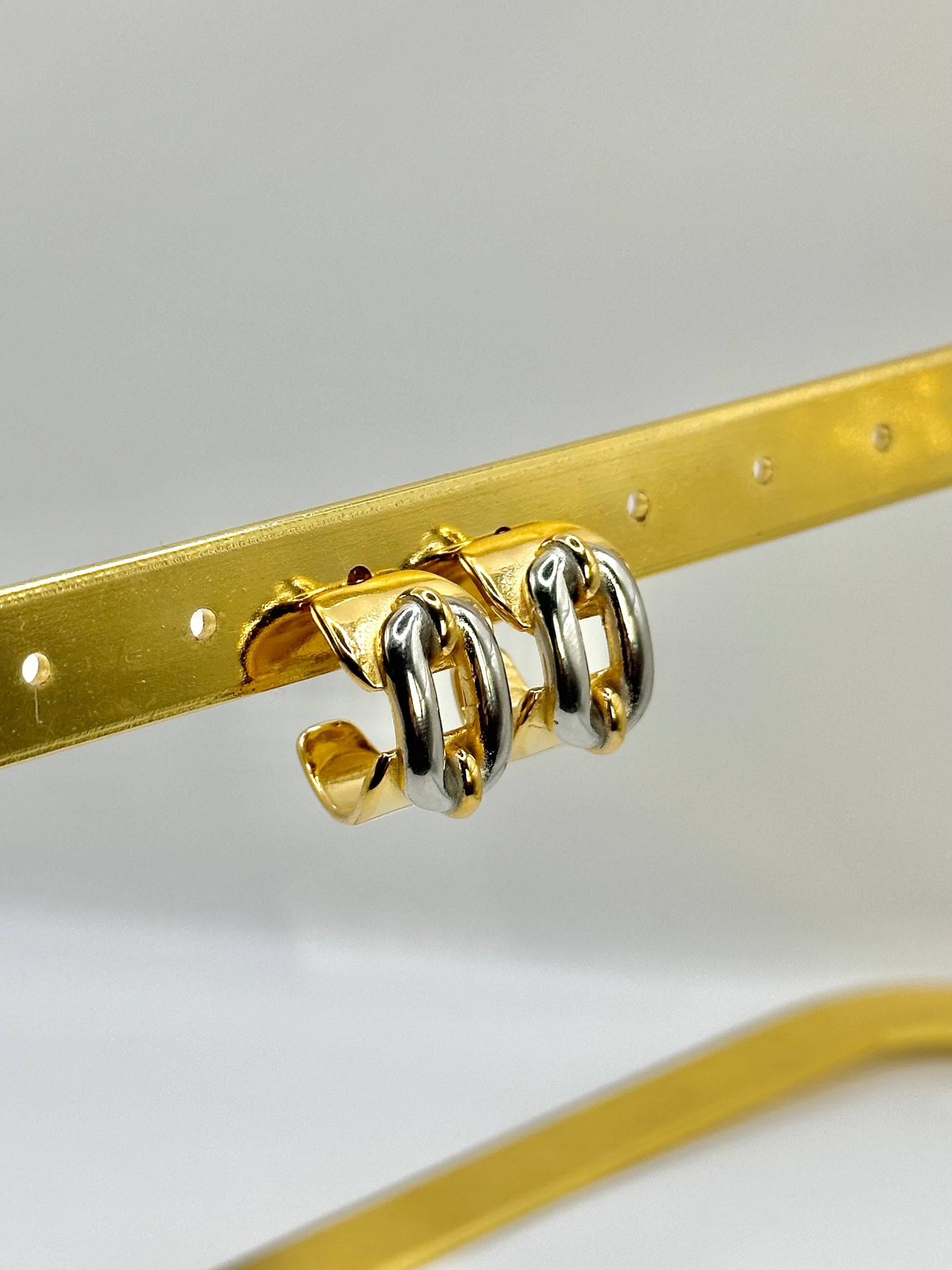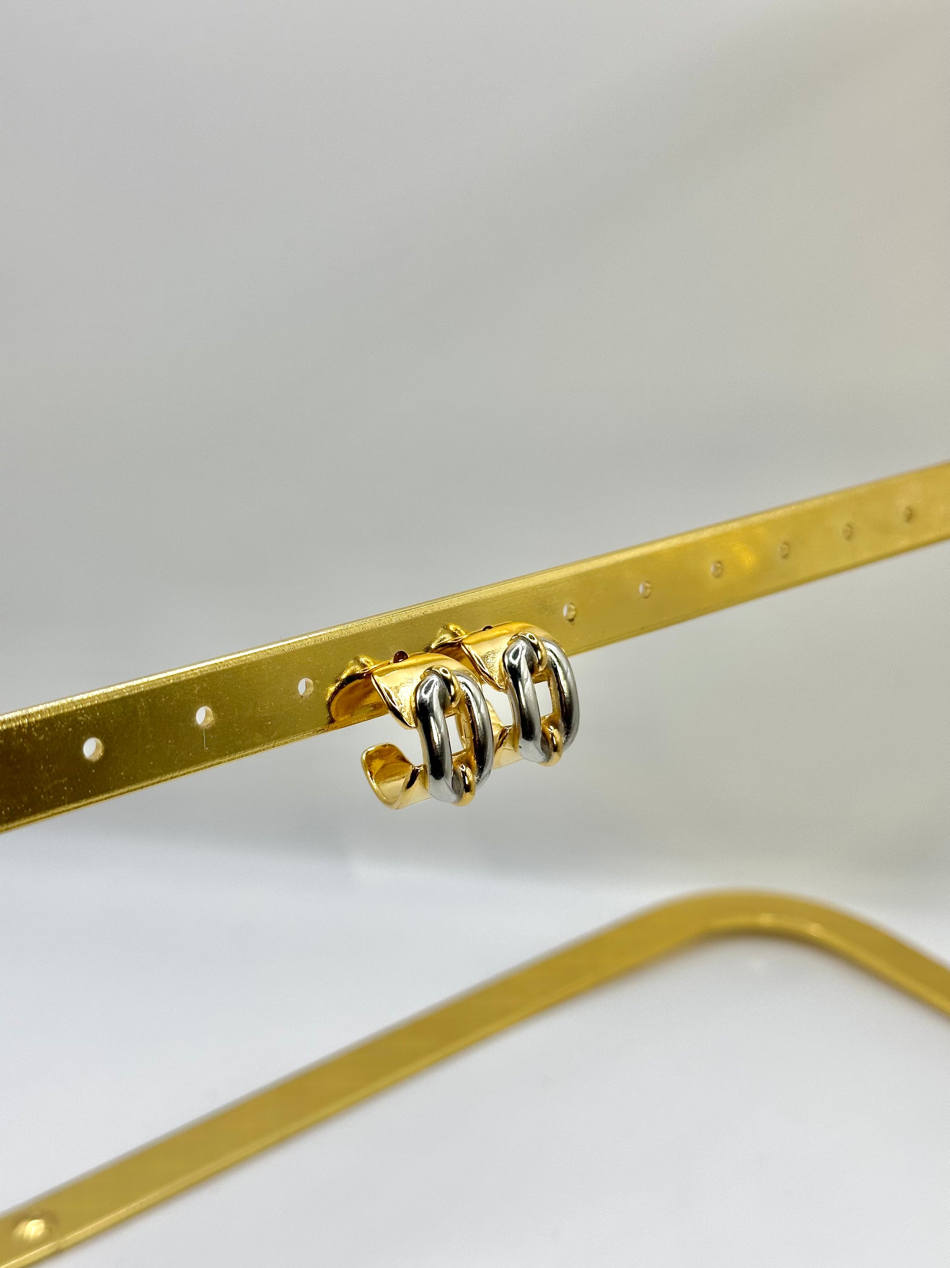 Pendientes de acero inoxidable combinación de dorado y plateado.