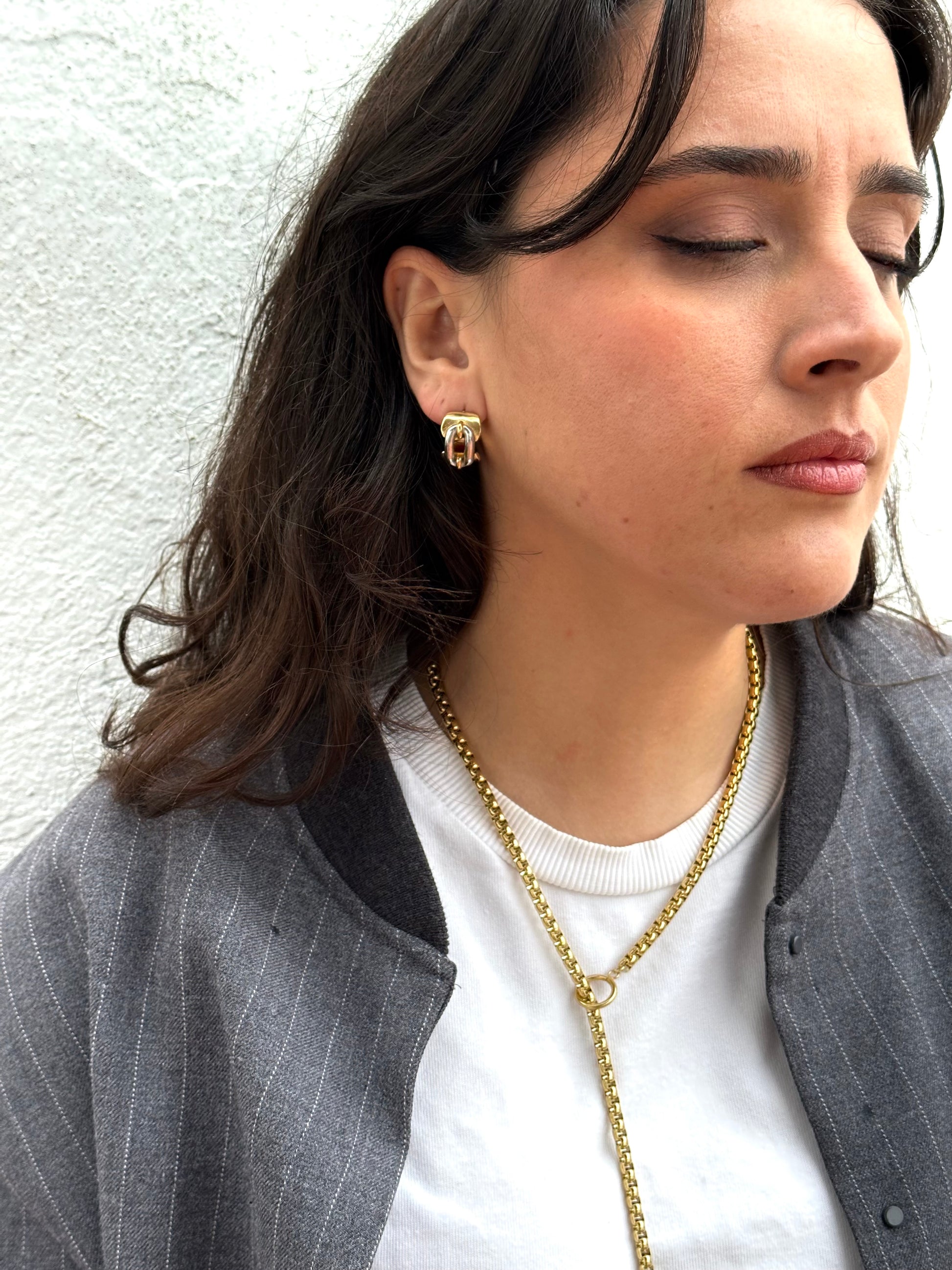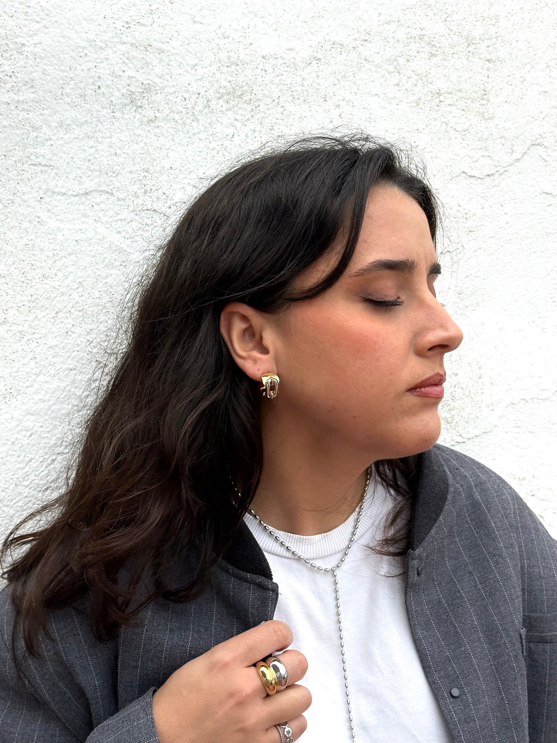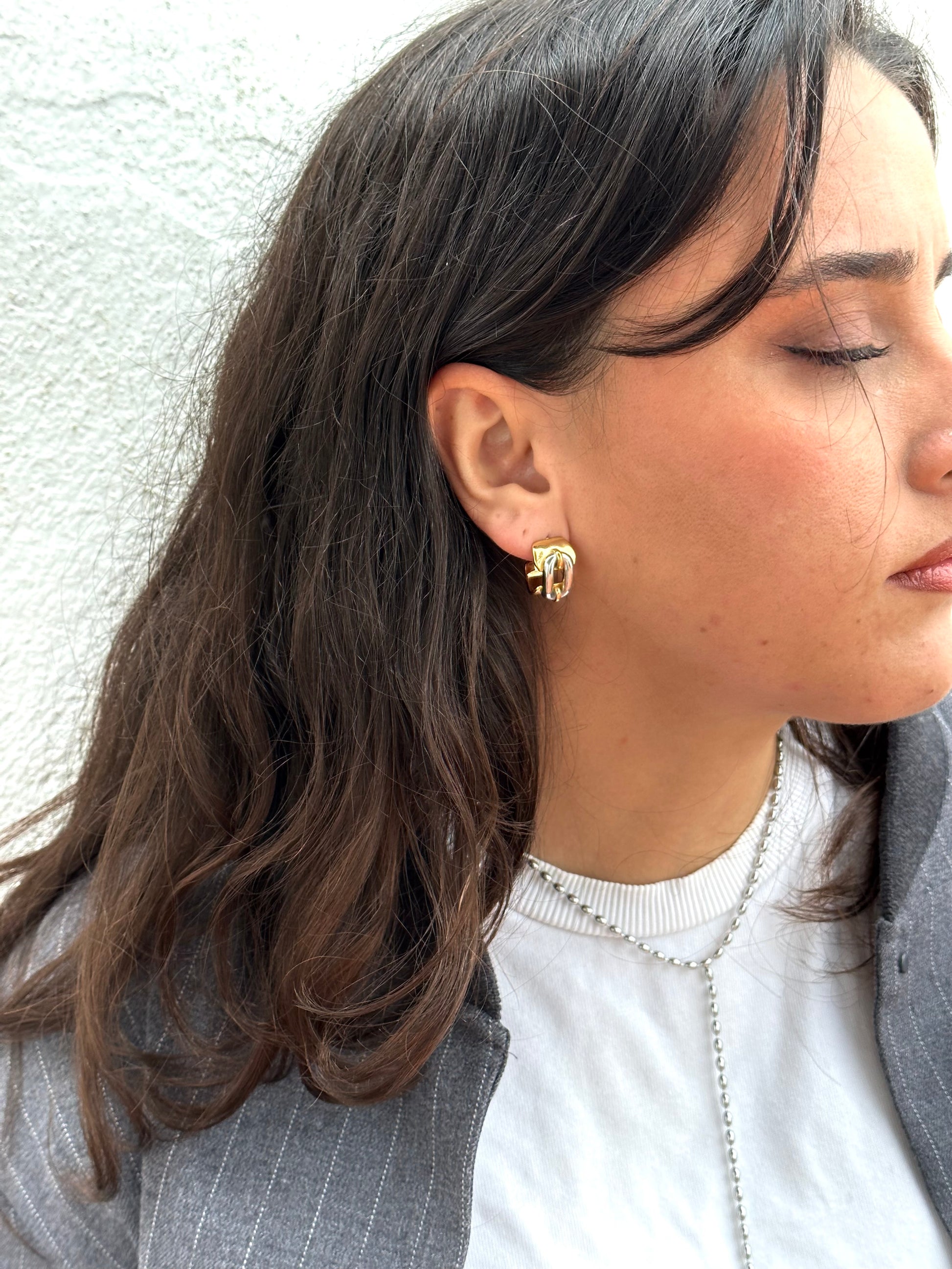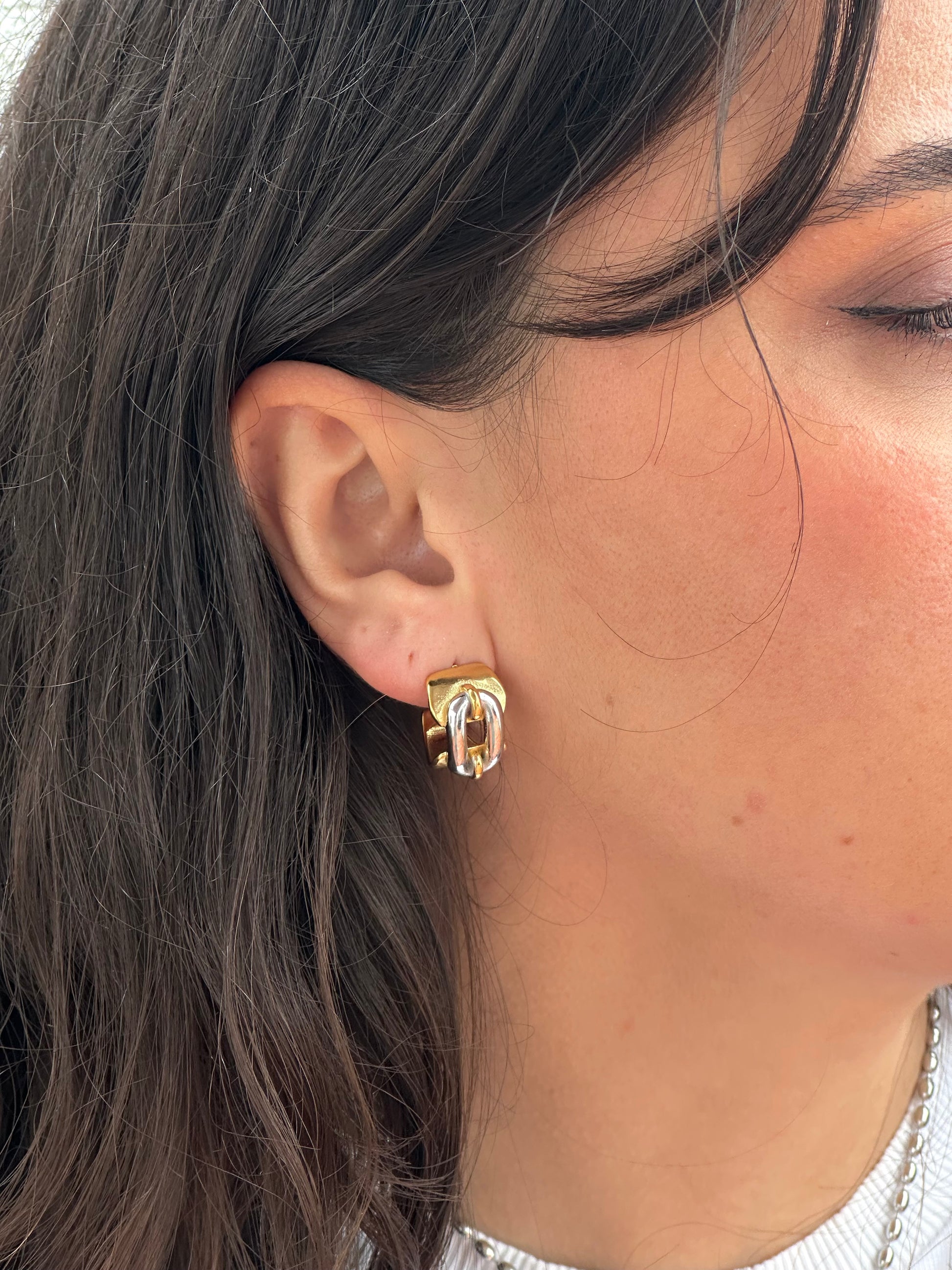 Pendientes de acero inoxidable combinación de dorado y plateado.