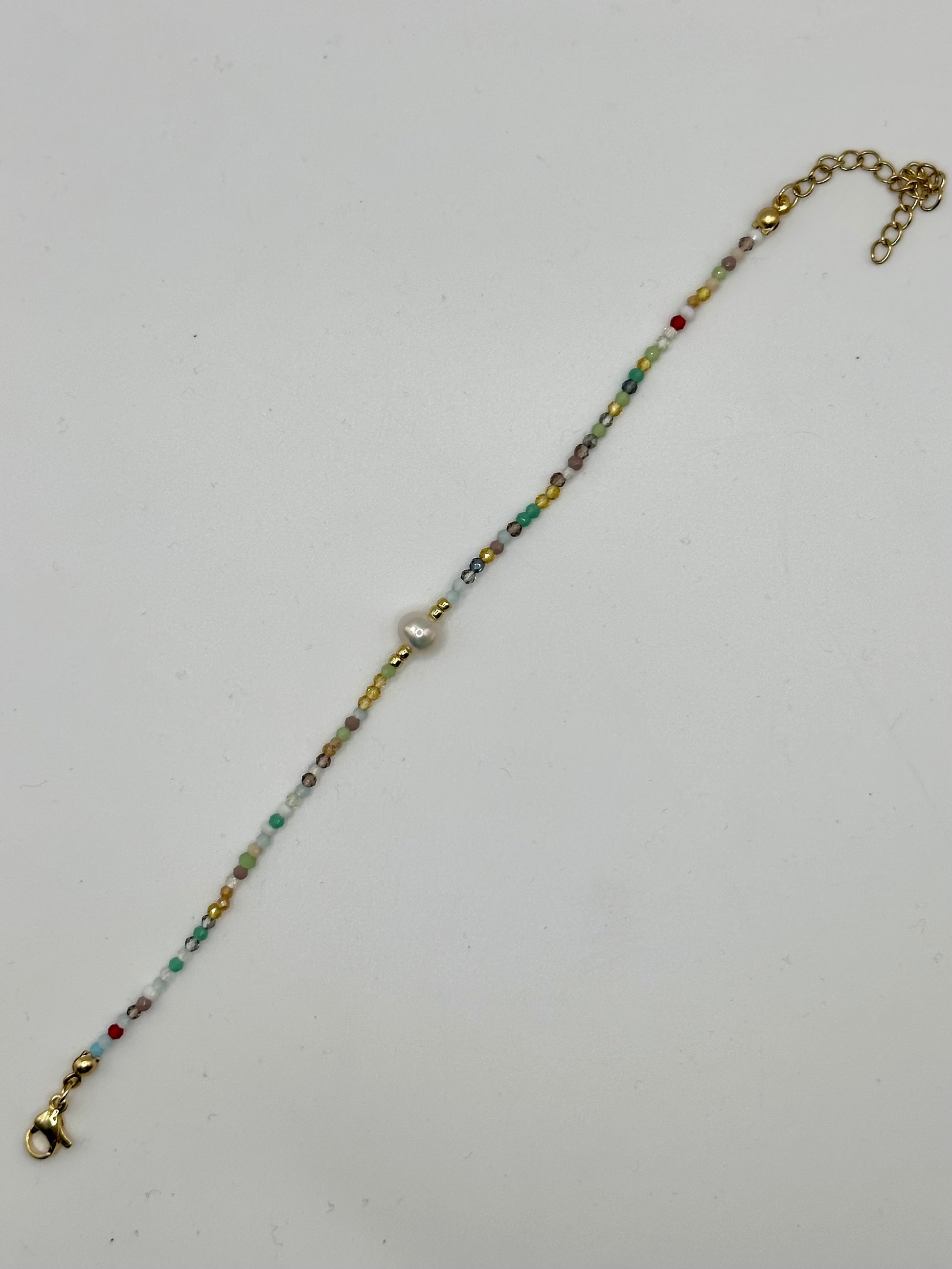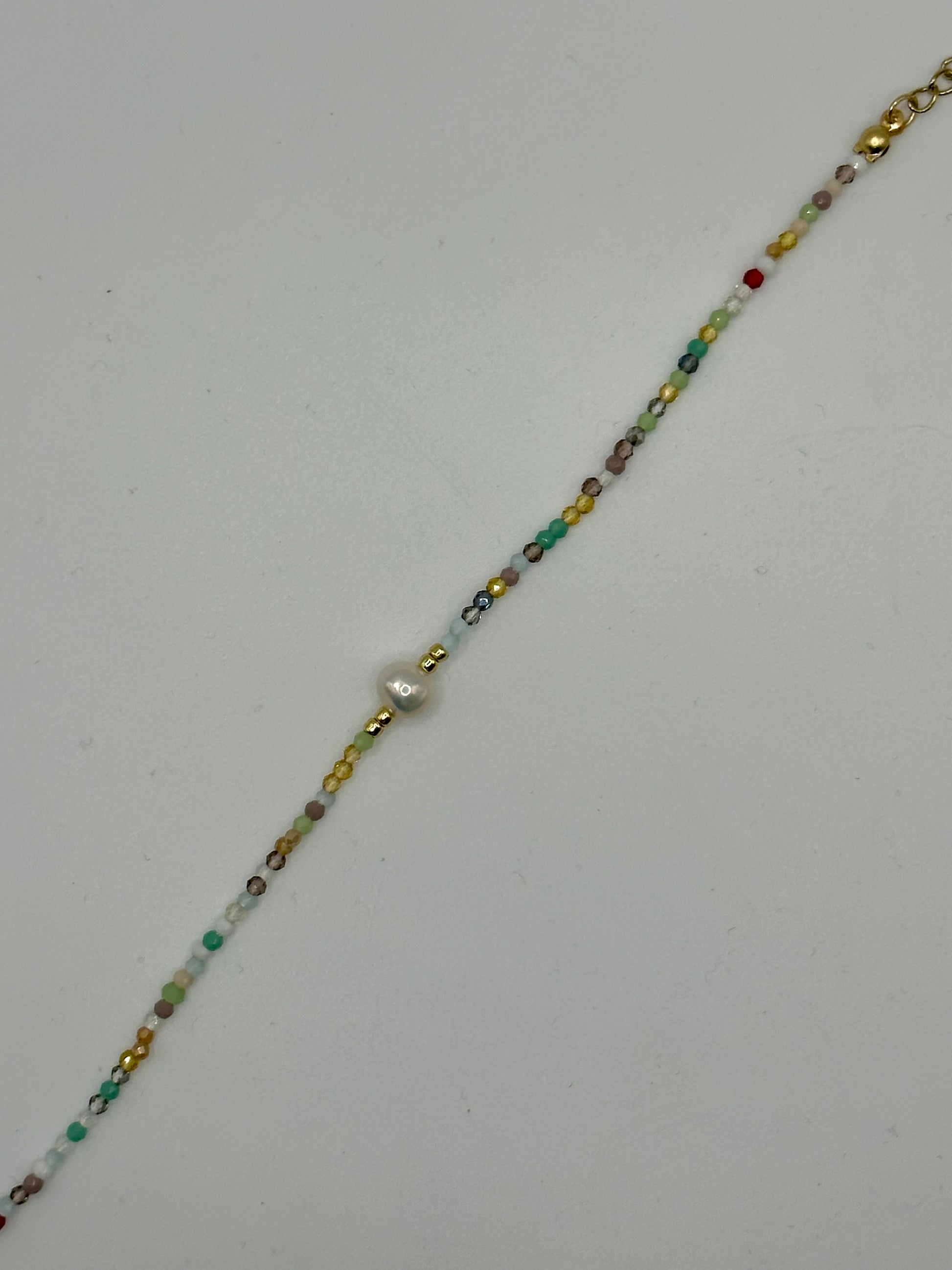 Pulsera de cuentas y perla natural de acero inoxidable.
